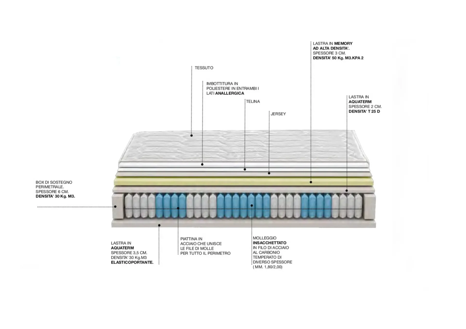 Materasso Smeraldo, 800 MolleMemory, Castiflex