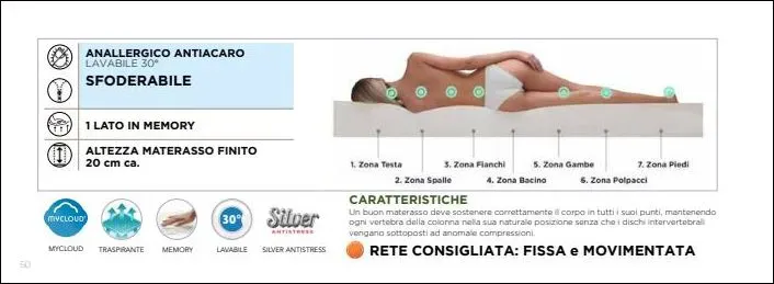 Il rivestimento del lato riposo non è solo un tessuto: è un sistema disinfettante avanzato, con proprietà antimicrobiche, antibatteriche, antimicotiche e anallergiche.