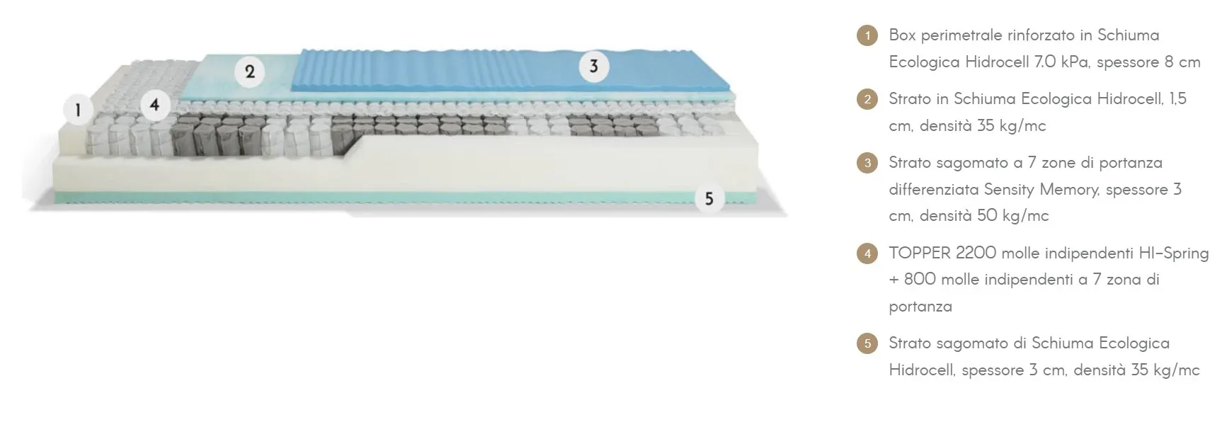 La sua struttura interna è studiata per sostenere il corpo in modo equilibrato, distribuendo la pressione in maniera uniforme così da favorire una postura corretta durante tutta la notte.