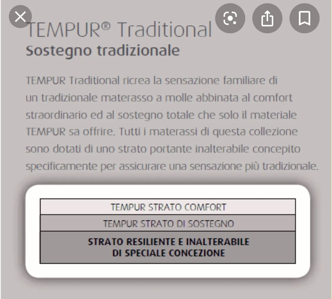 Scheda tecnica materasso Tempur sentation traditional nuovi a prezzi mai visti