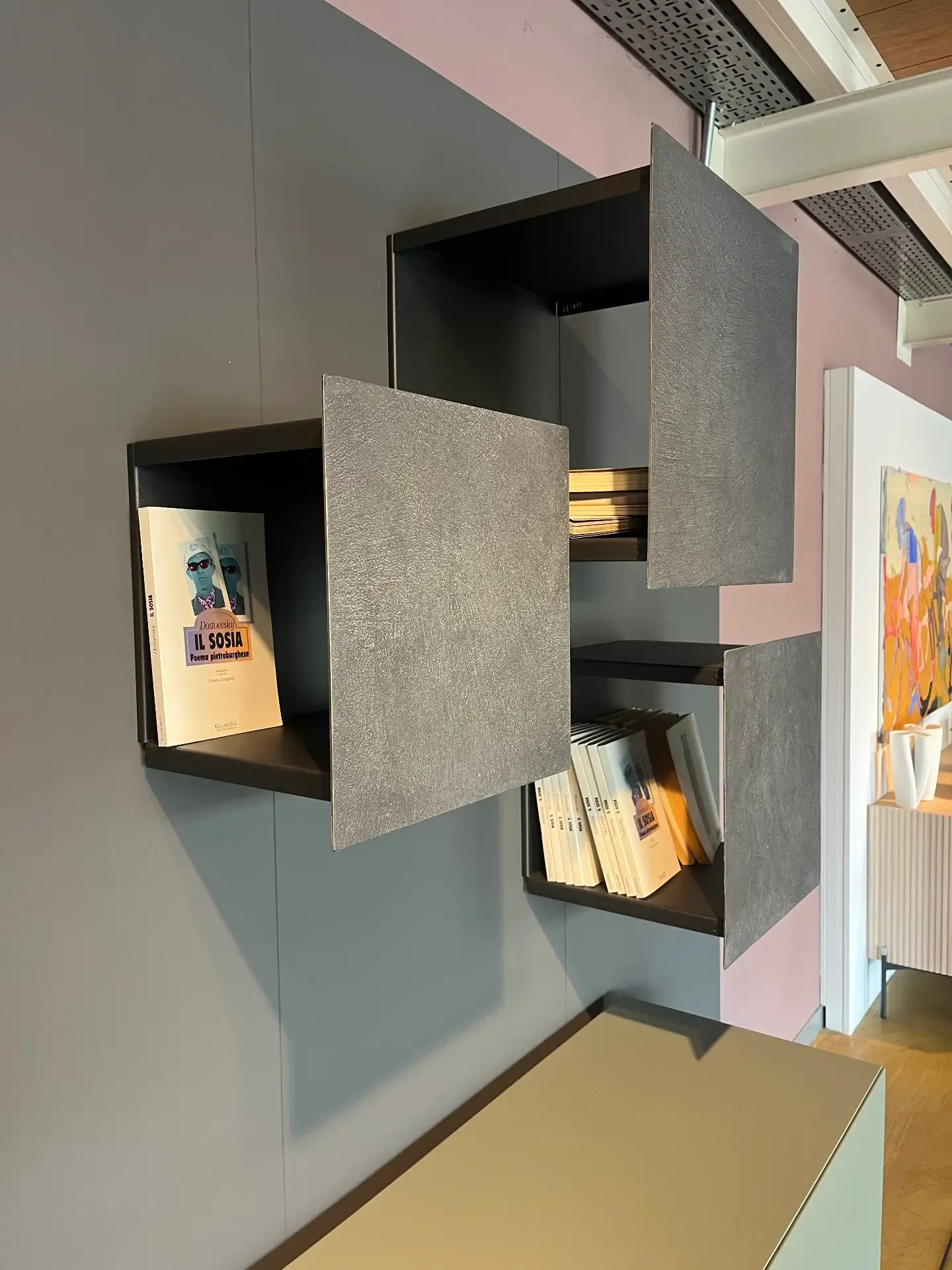 Contenitori a parete quadrati, realizzati in metallo bronzato con finitura nella tonalità Grey lava.
