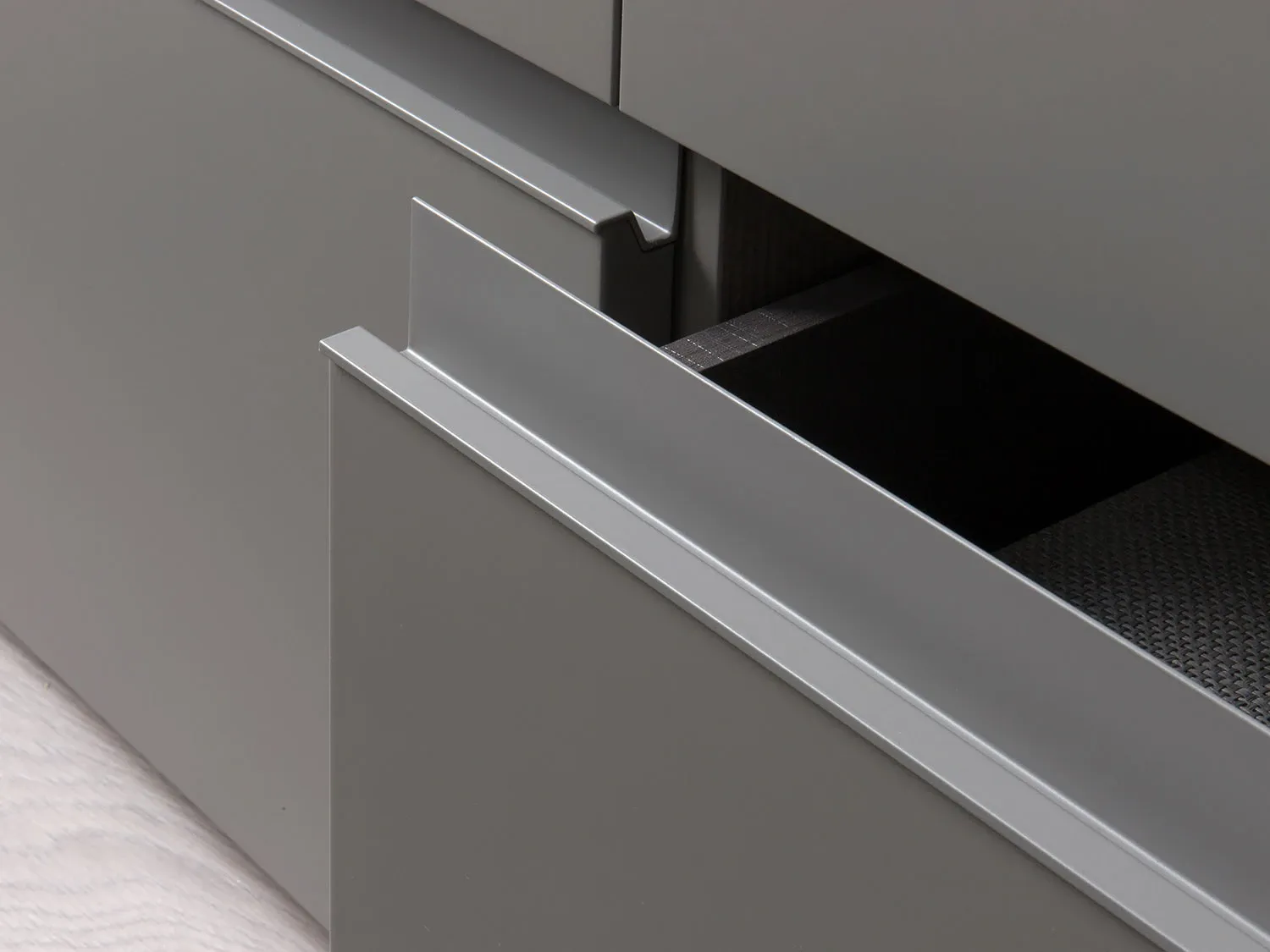 apertura di ante e cassetti con elegante unghiatura in metallo laccata