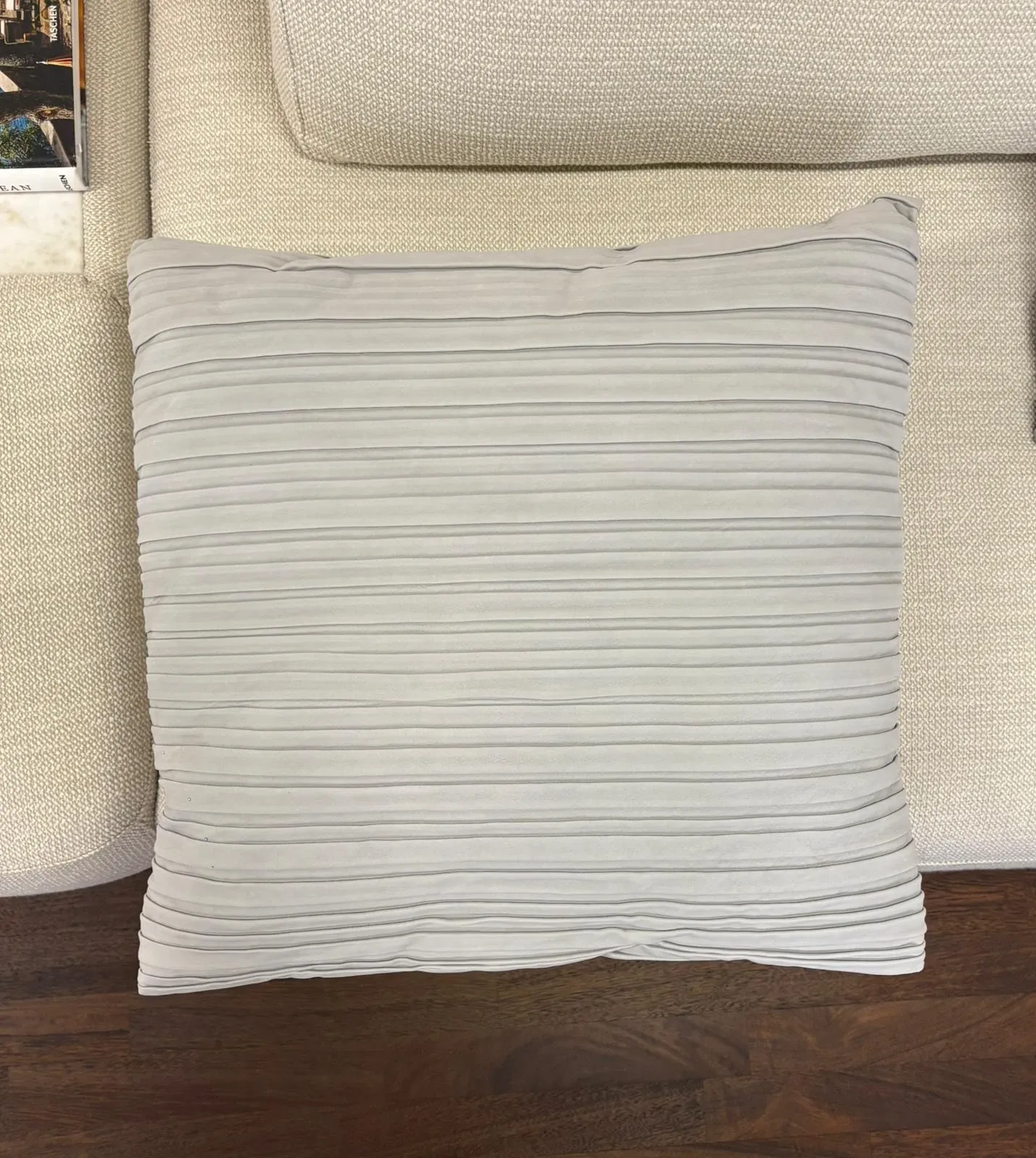 Ogni cuscino decorativo è imbottito in soffice piuma d oca e rivestito da pelli morbide dall effetto liscio o, nell edizione speciale, piegato e plissettato a mano come le gonne di alta moda.