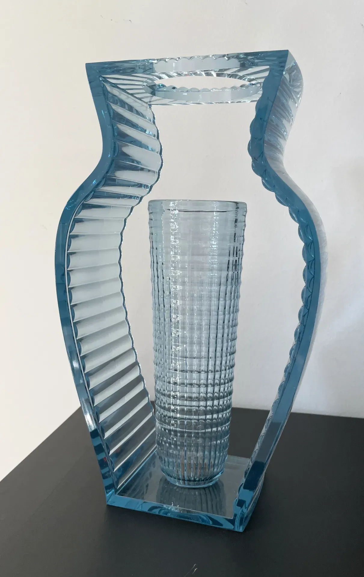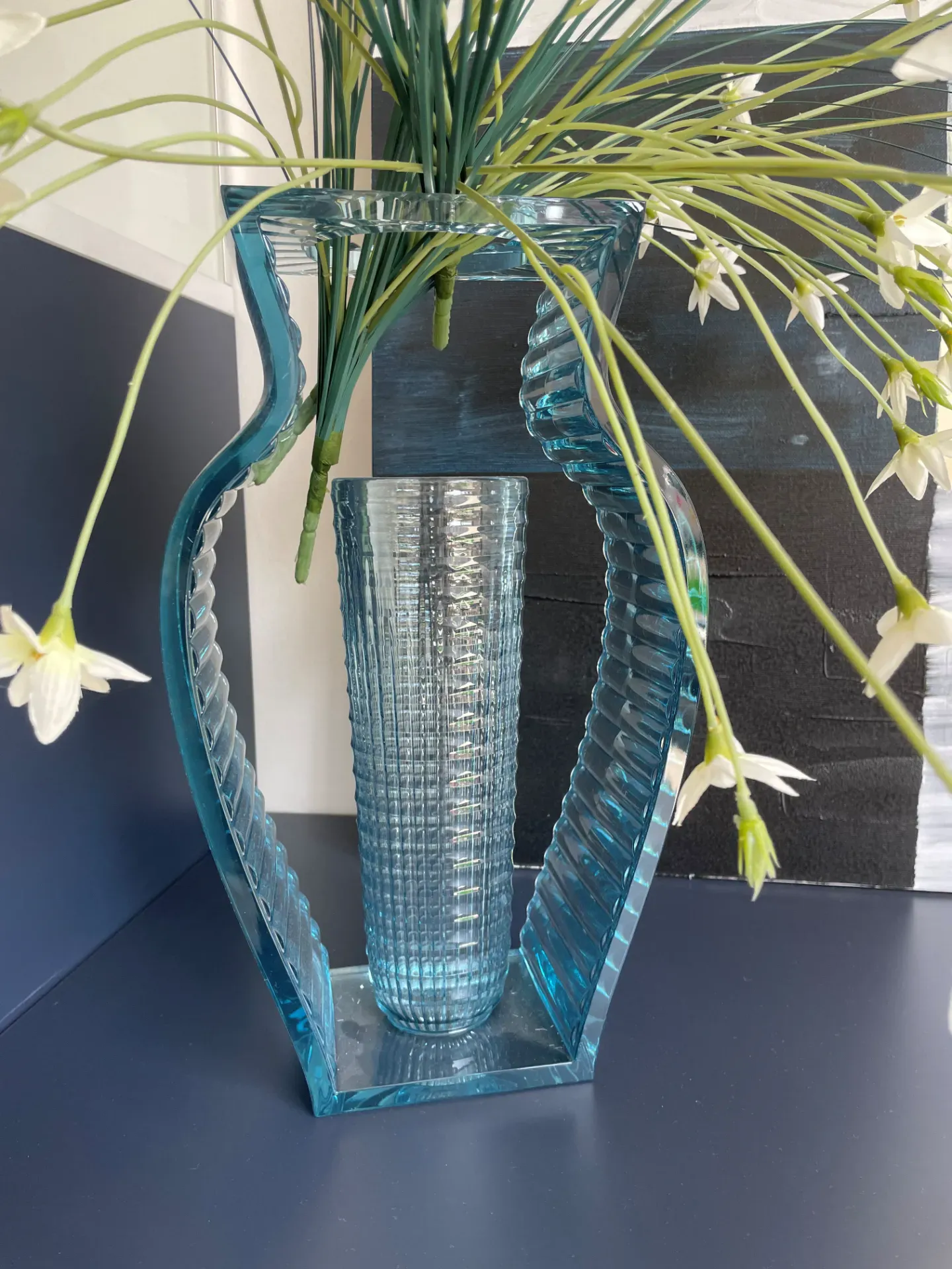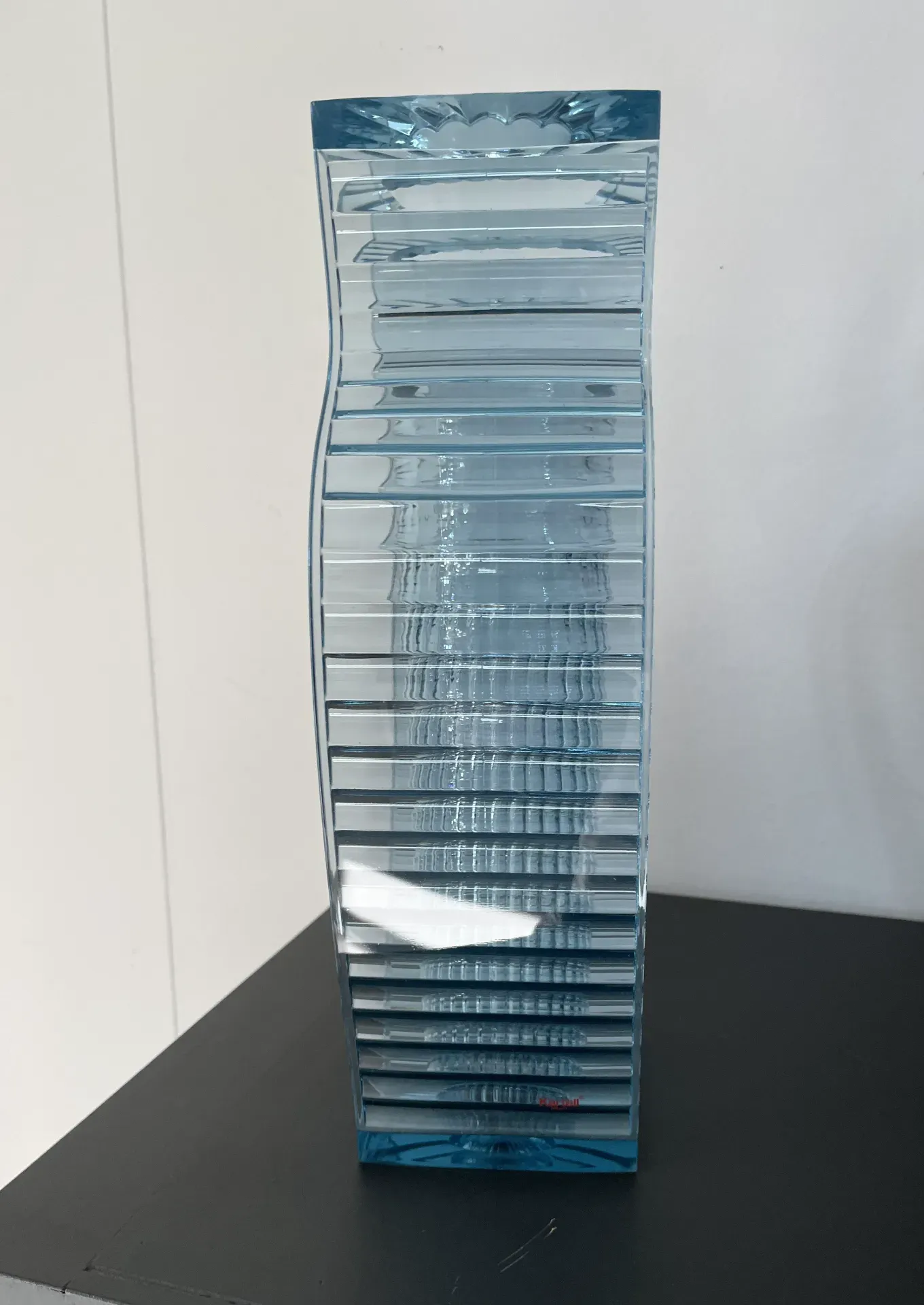 Kartell vaso I Shine, design by Eugeni Quitllet. Ispirato all'art déco, I Shine può essere utilizzato sia come vaso, sia come centrotavola. I Shine è alto 33 cm, largo 20 cm e profondo 9,5 cm ed è interamente realizzato in PMMA trasparente.