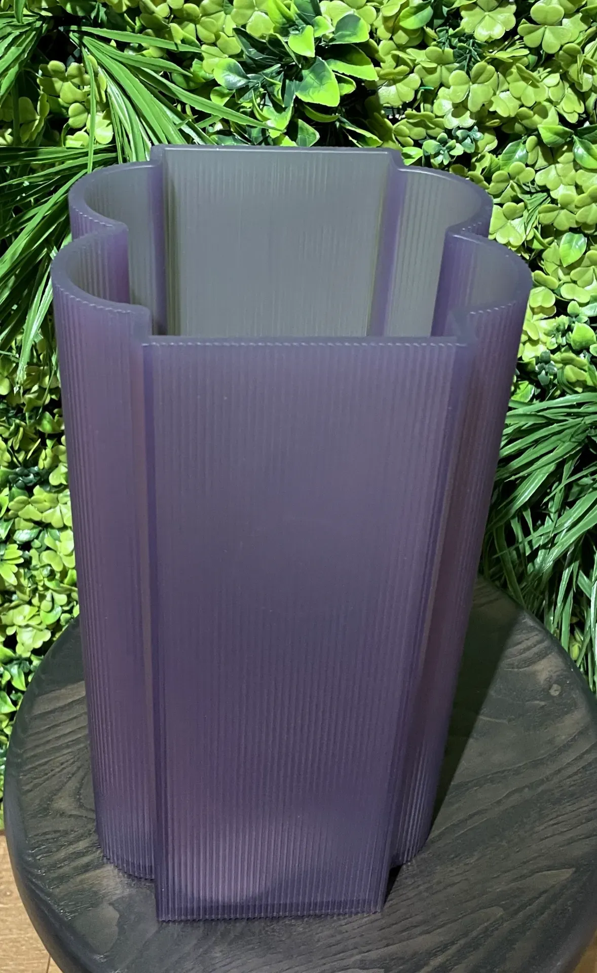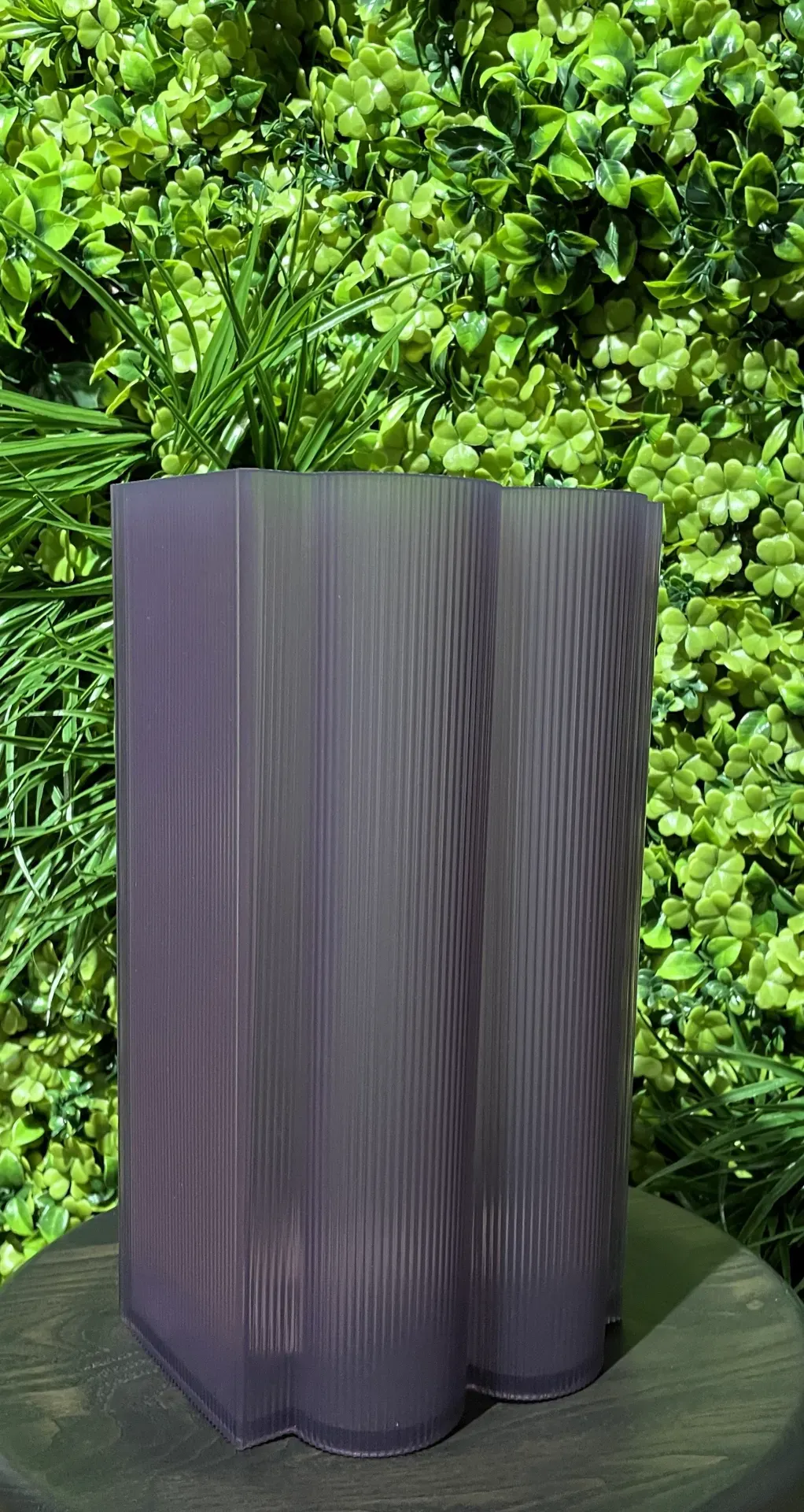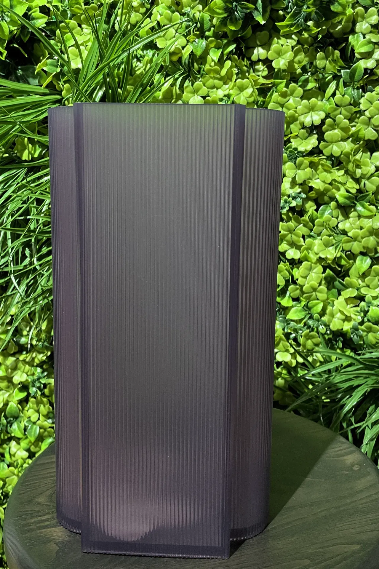La superficie del vaso presenta una texture unica che cattura la luce in modo sorprendente, creando effetti visivi che arricchiscono qualsiasi ambiente. La scelta del materiale riciclato non compromette la qualità estetica del prodotto, anzi, ne esalta la modernità e l'eleganza.