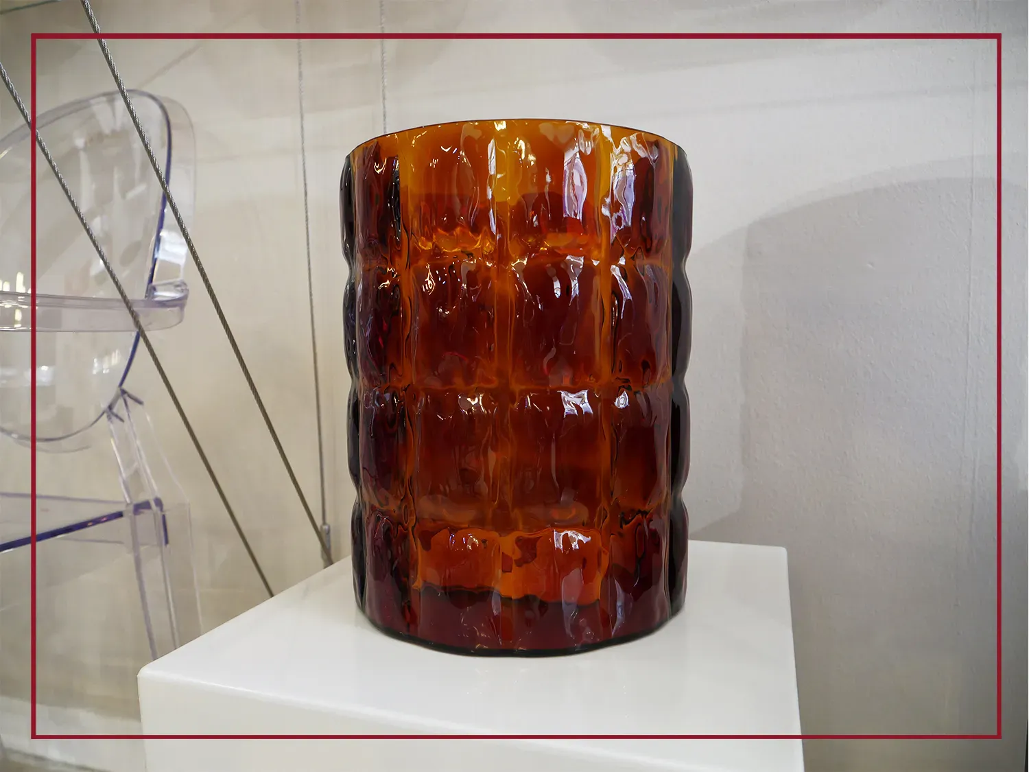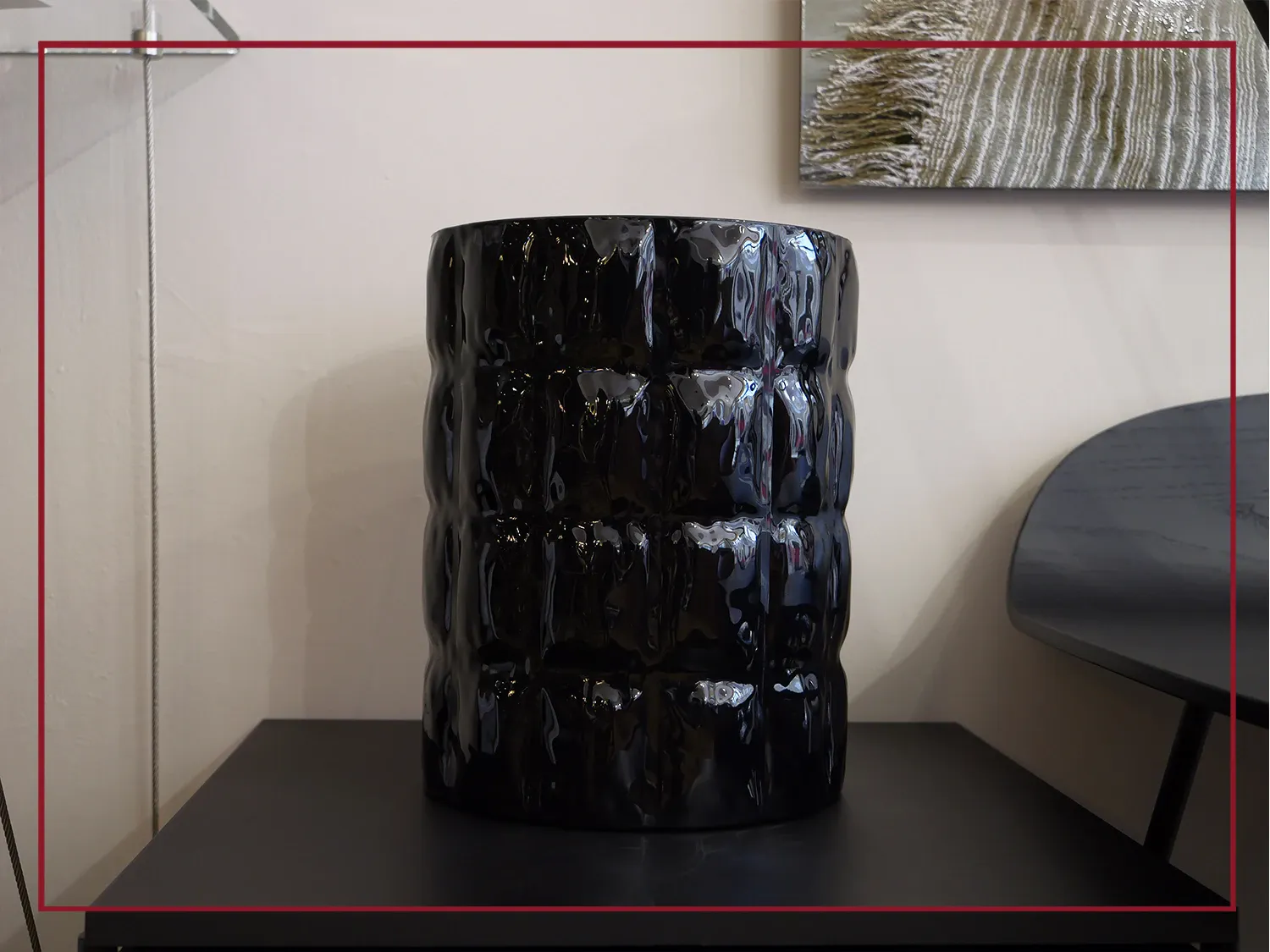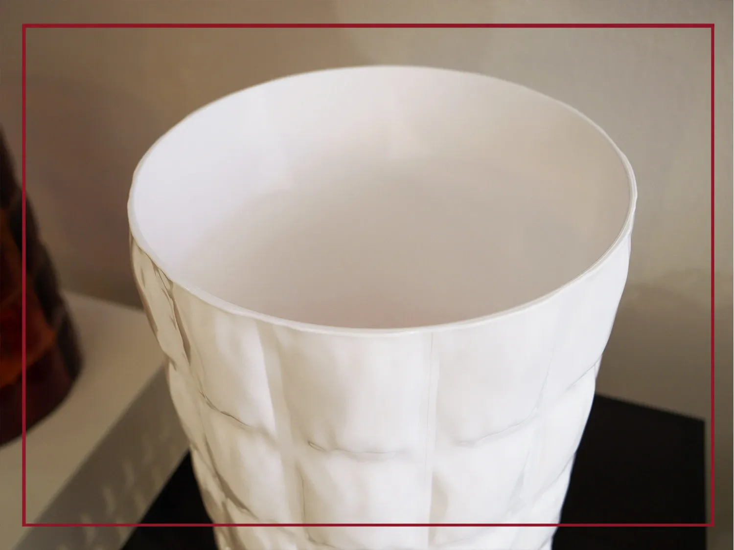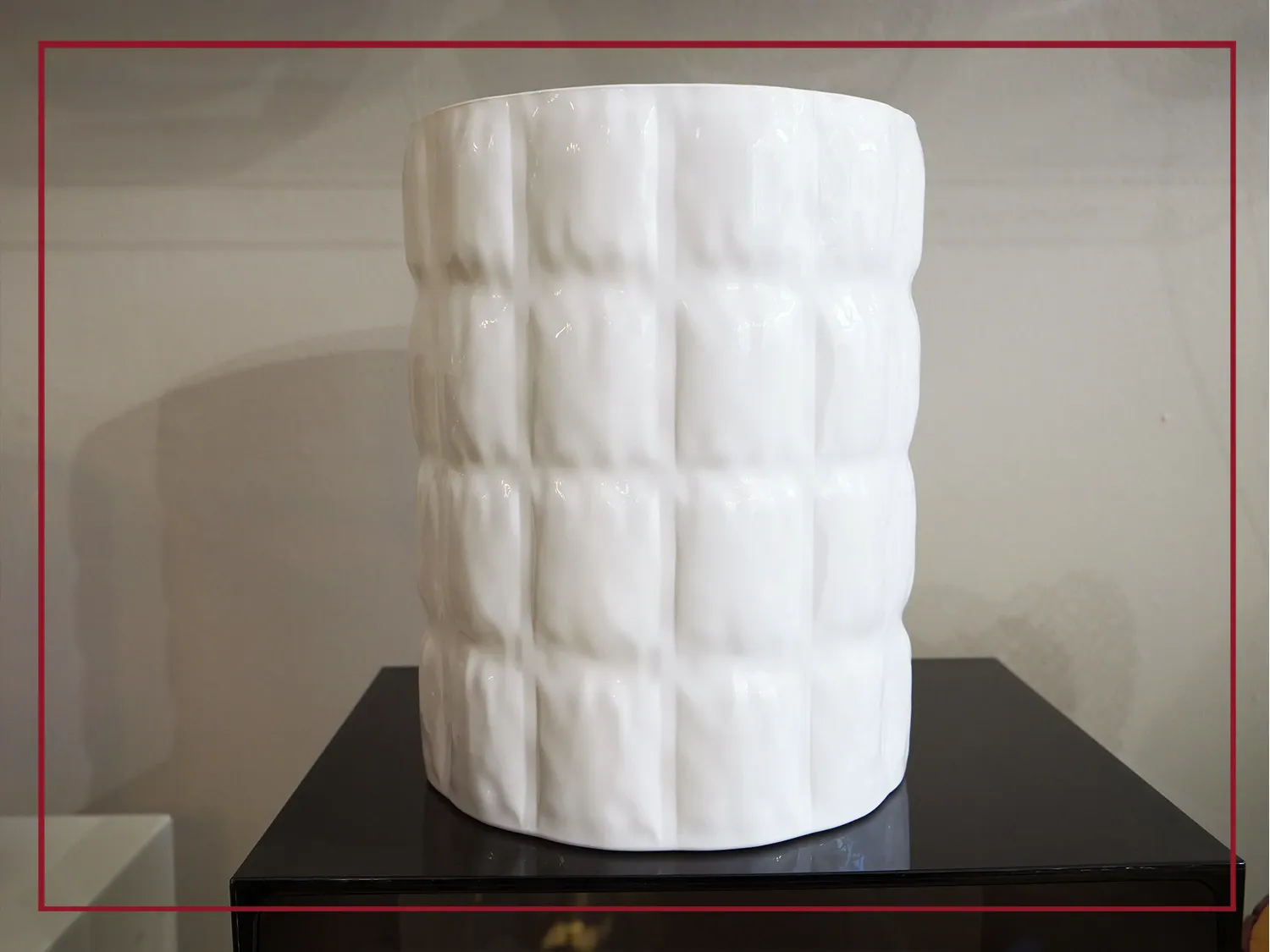 La particolarità di questo vaso, originale e dall allure speciale, consiste nella conformazione materica, che ricorda un tessuto goffrato, caratterizzata da forme sinuose, dovute ai diversi spessori della superficie.