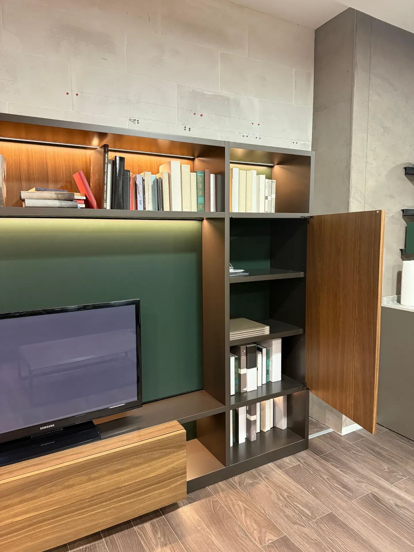 Il sistema gioca con volumi orizzontali e verticali modulabili, permettendo composizioni che si estendono da pareti attrezzate classiche fino a ambienti open space e librerie-contenitore. L utilizzo di materiali pregiati come laccati opachi, essenze in legno, vetro o ceramica aggiunge sofisticazione e durevolezza.