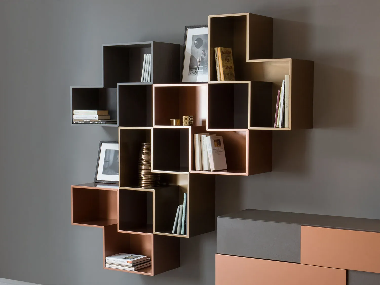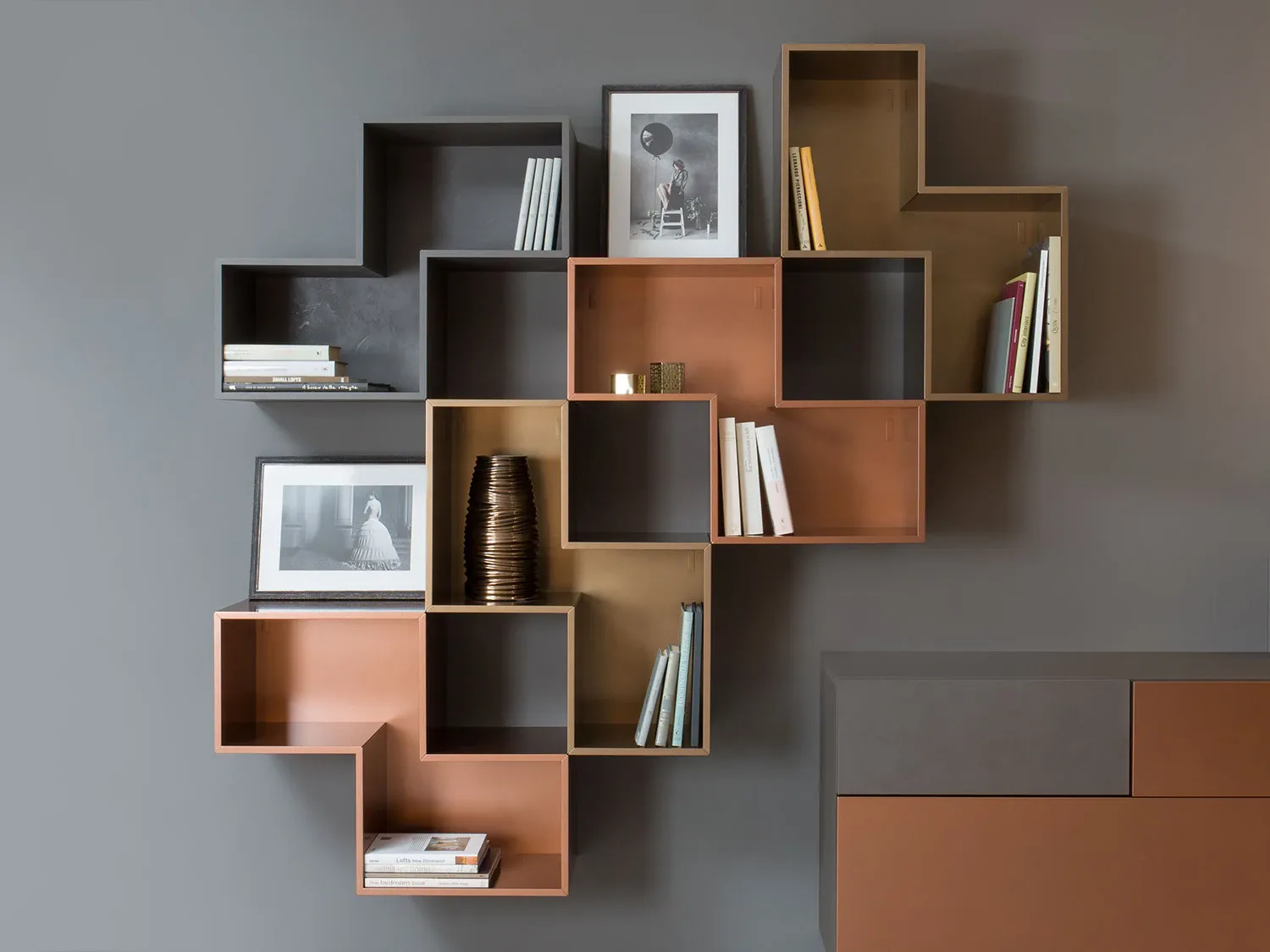 Cube Outlet è una composizione modulare di mensole sagomate con schienale, pensata per chi cerca un estetica pulita ma d effetto. L eleganza del sistema si rivela nei dettagli costruttivi, come le giunzioni a 45° tra piani e fianchi. Le cinque mensole componibili permettono di creare configurazioni personalizzate, giocando con colori e geometrie per un risultato visivo di forte impatto.