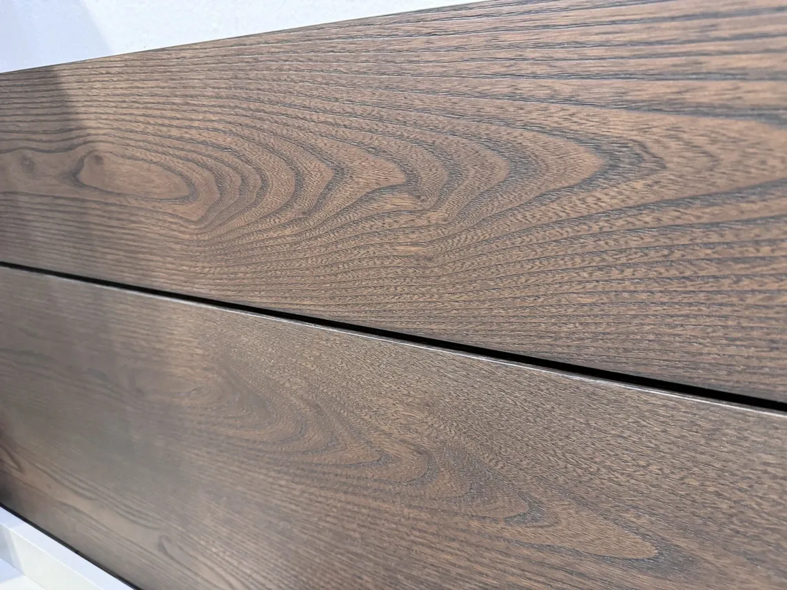 PARETE SORVOLO DAY_PARETE ATTREZZATA L.354 P.51,2 H.180 FINITURE VISONE, POMICE, PANNELLATURA OLMO RUGGINE PORTA TV FERRO CERATO