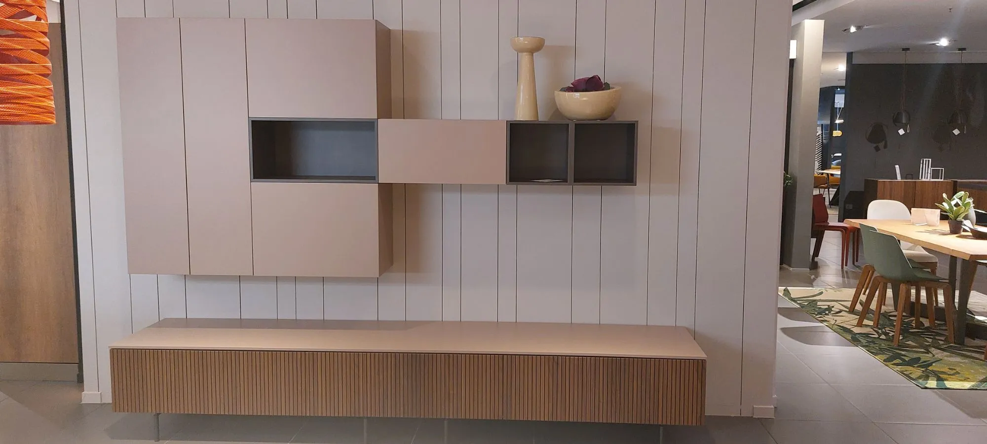 Per il tuo soggiorno abbiamo pensato ad una linea di mobili e oggetti accessori in laccato opaco, come la parete attrezzata Day 12 in Offerta Outlet, ideale per congiungere doti di funzionalità e stile nel tuo soggiorno.