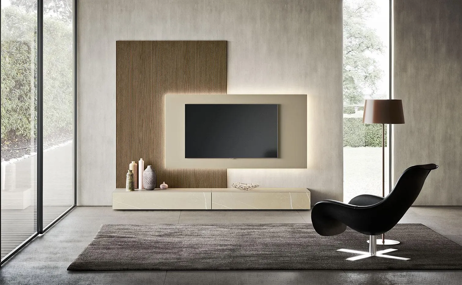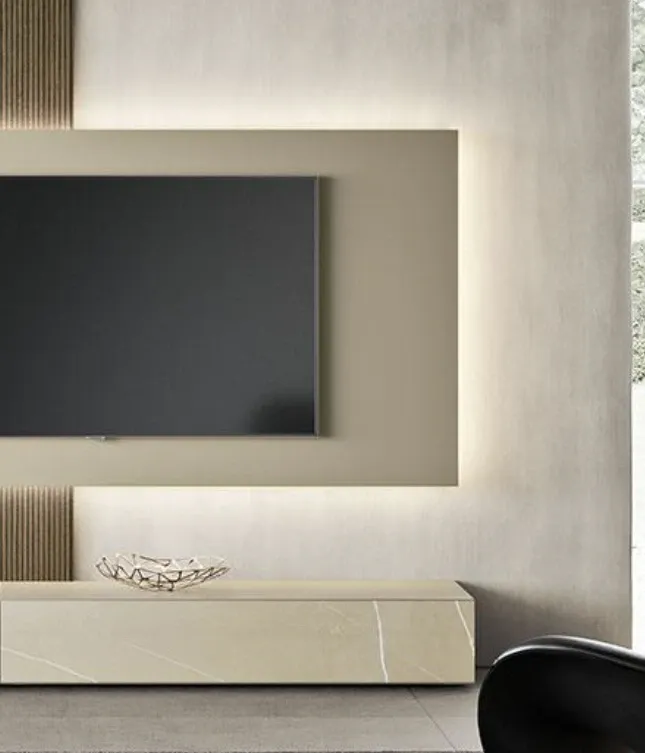 Scegliere Horizon significa portare a casa un atmosfera: un equilibrio di forme, luce e materia che rende il living un luogo unico, caldo e personale. Una parete attrezzata che non riempie lo spazio lo valorizza.