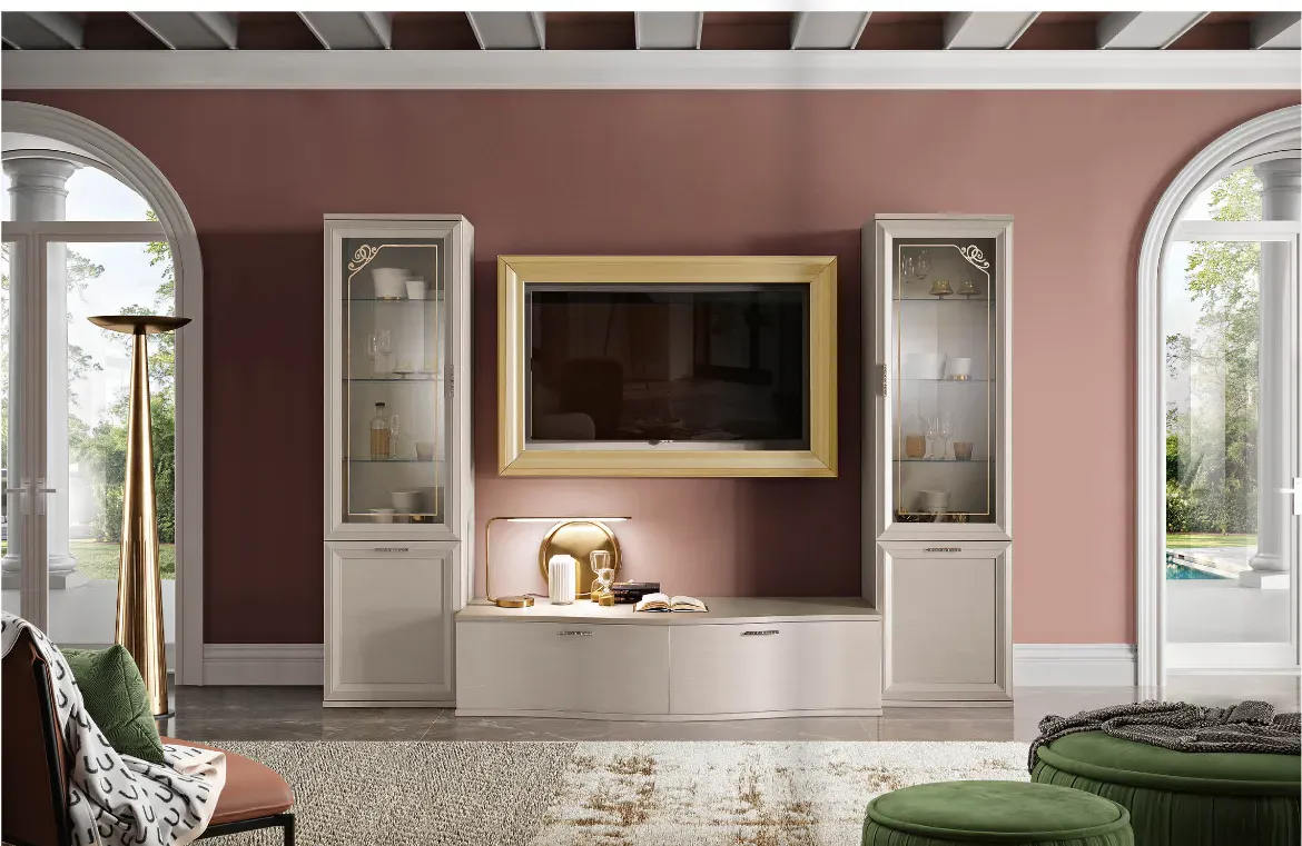 La zona giorno si compone di vari mobili e oggetti accessori capaci di ultimare lo spazio valorizzando ogni angolo ; tra questi deve esserci una parete attrezzata come il modello Jazz luxury composizione 139 di Gierre Mobili mostrato in foto, pensata per dare vita a un soggiorno dinamico e operativo.Stile, dimensioni e finiture del modello Jazz luxury composizione 139