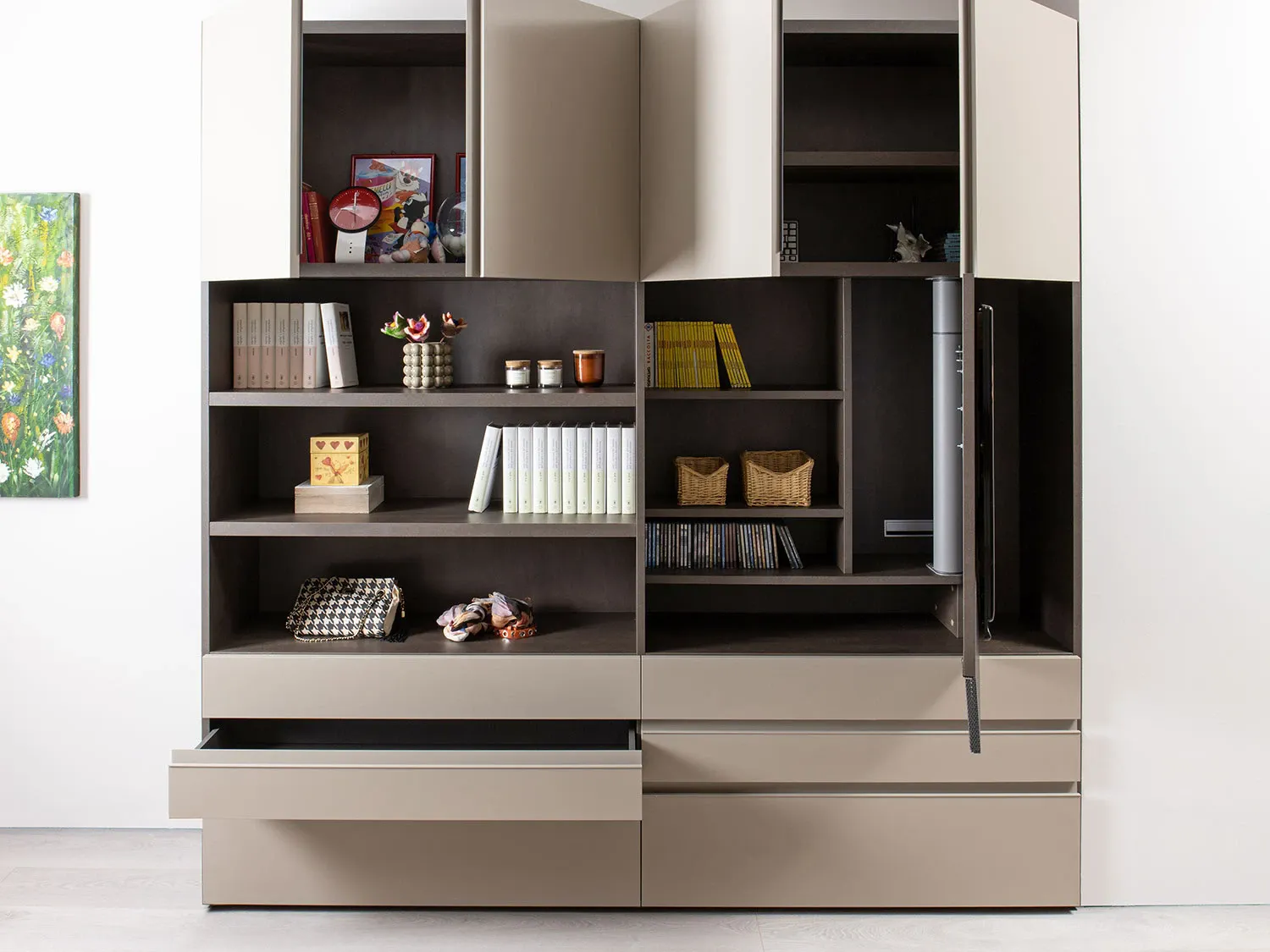 ampi cassetti e vani chiusi per una ottima organizzazione funzionale