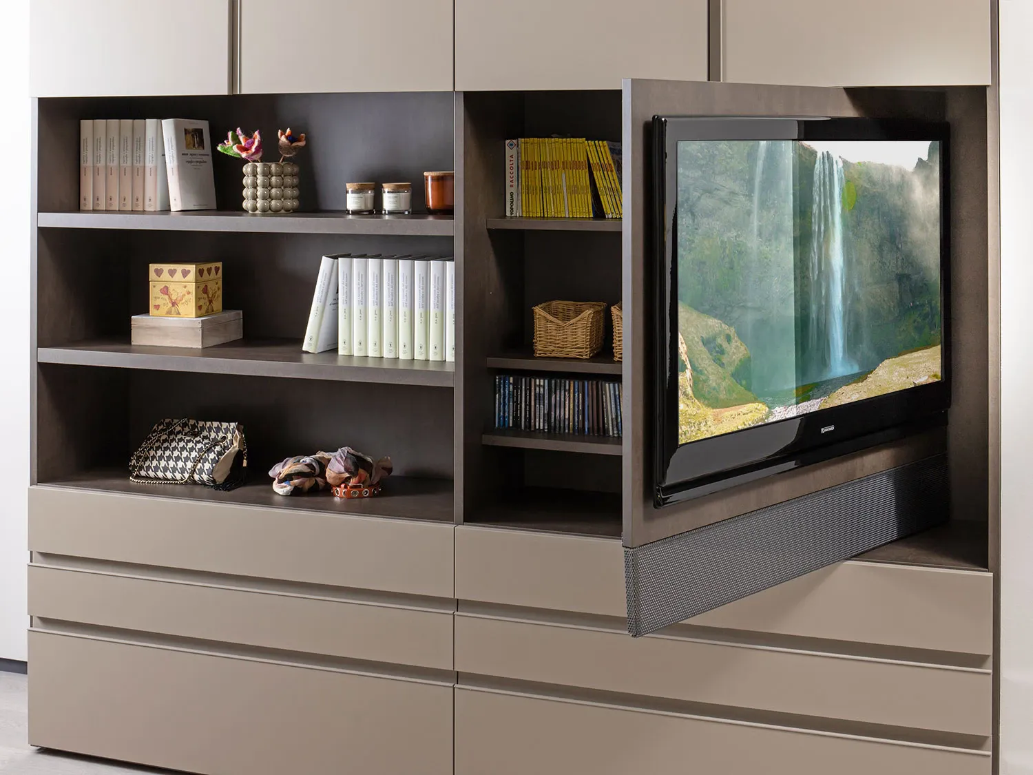 armadio libreria con modulo TV orientabile