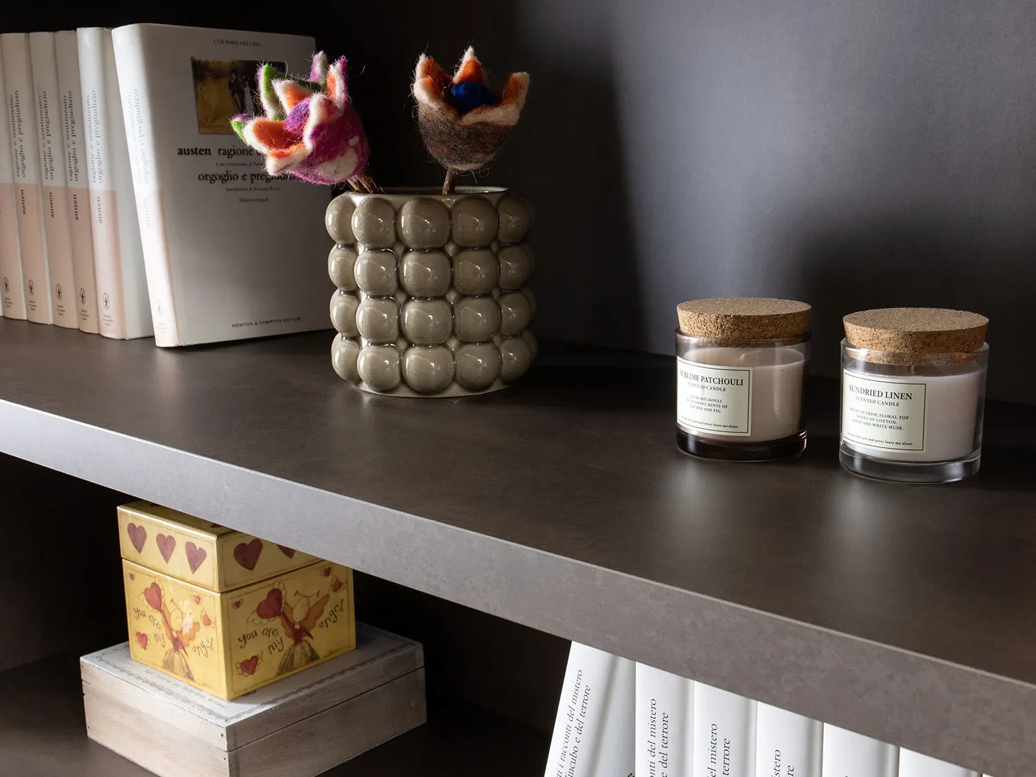- libreria, fianchi e pannello Tv: nobilitato Old Copper