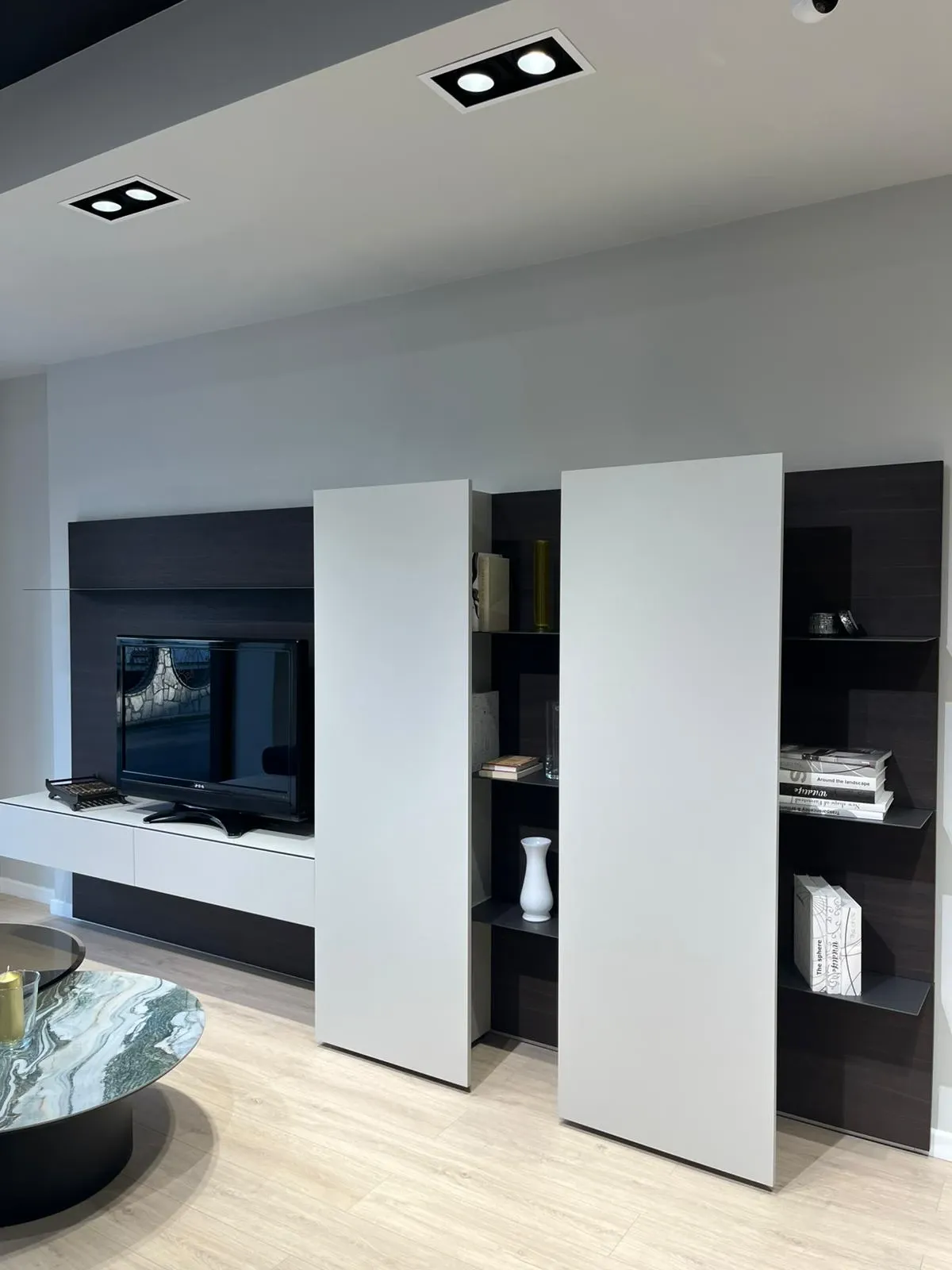 Composizione moderna e raffinata, ideale per soggiorni contemporanei