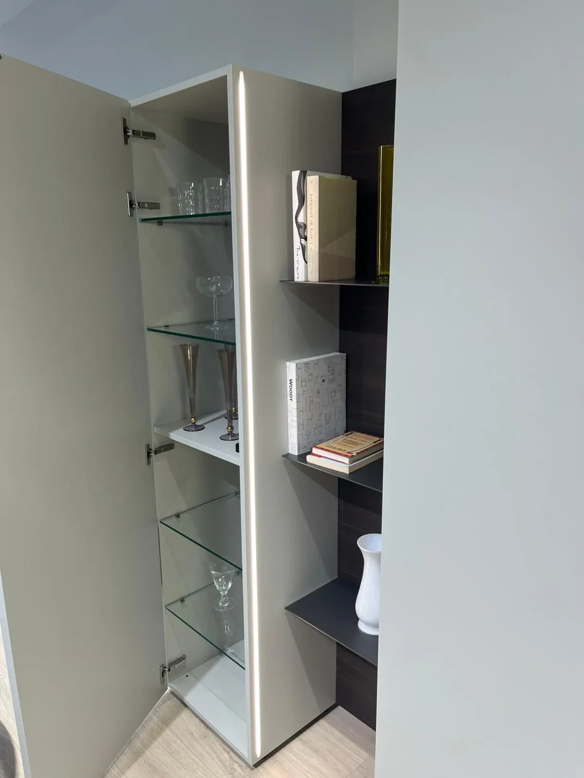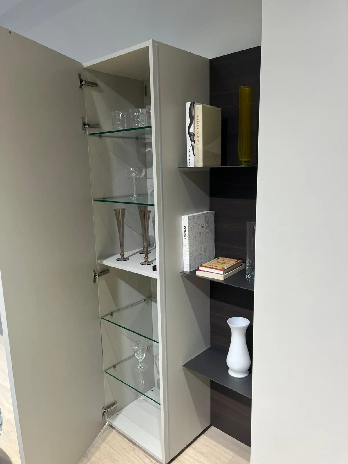 Interno del pensile con mensole in vetro