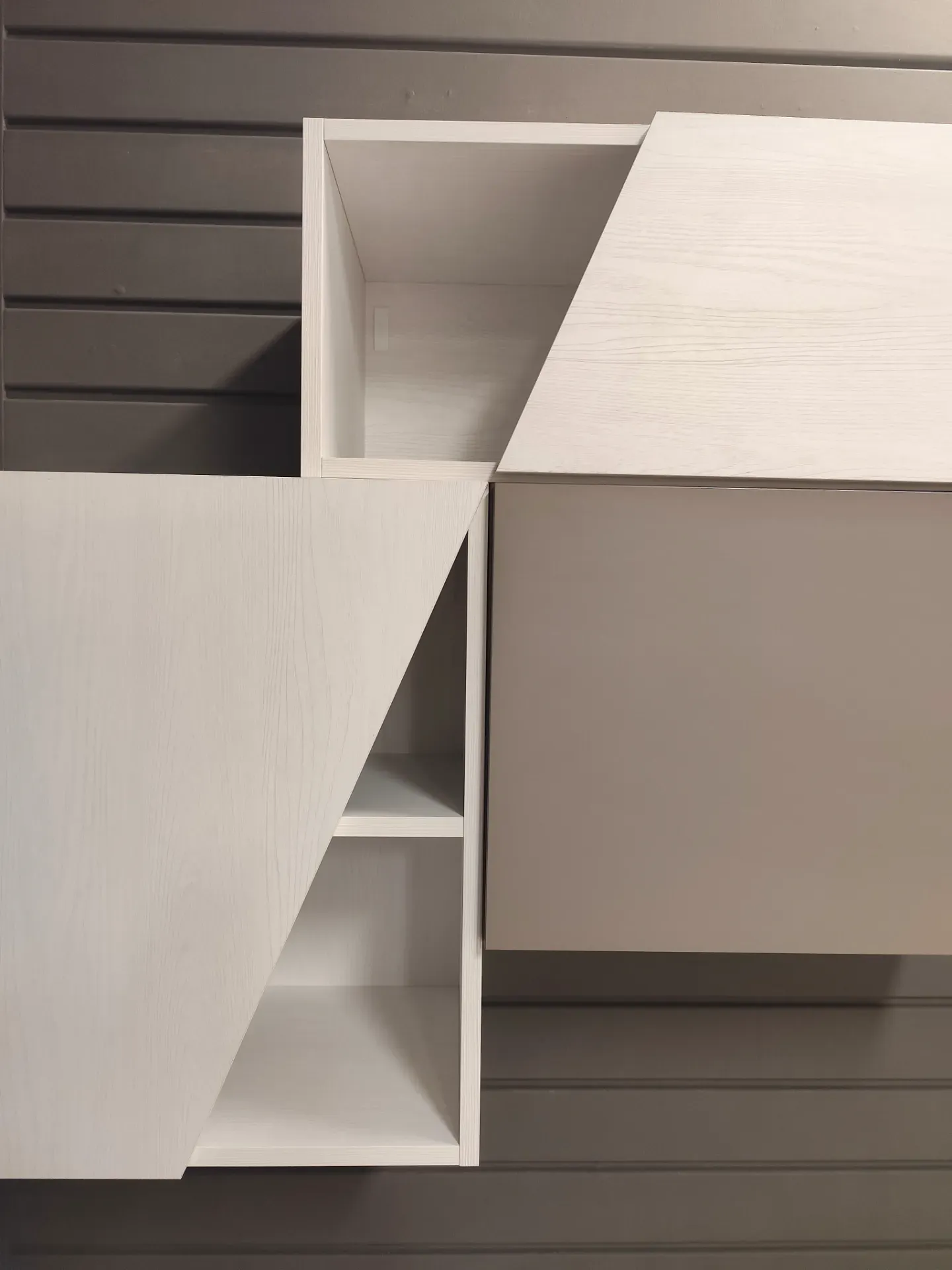 Particolarità delle ante tagliate in diagonale per dare movimento.