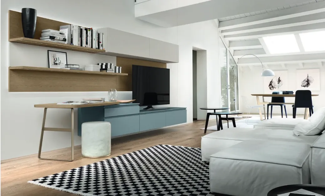 I mobili e oggetti accessori per il living danno la possibilità di personalizzare lo spazio creando particolari atmosfere: se vuoi un soggiorno moderno, la parete attrezzata in foto è l’ideale.