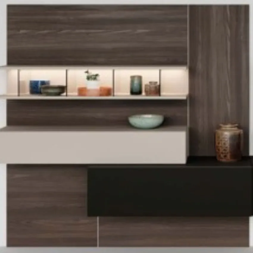Per impreziosire un living moderno scegli una parete attrezzata che mantenga una certa coerenza di stile, come questo modello Composizione 5 b a prezzo ribassato.