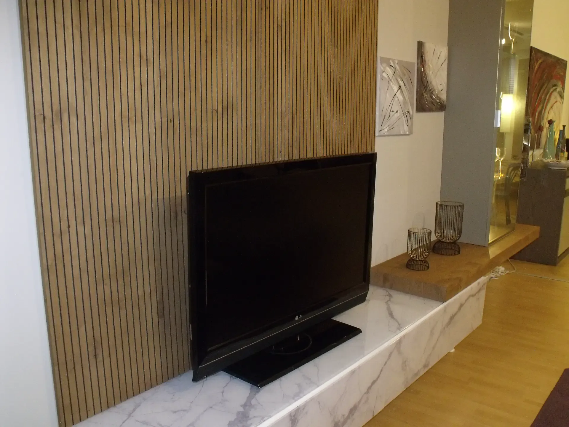 Completa la composizione un pannello in legno millerighe da 180 cm.