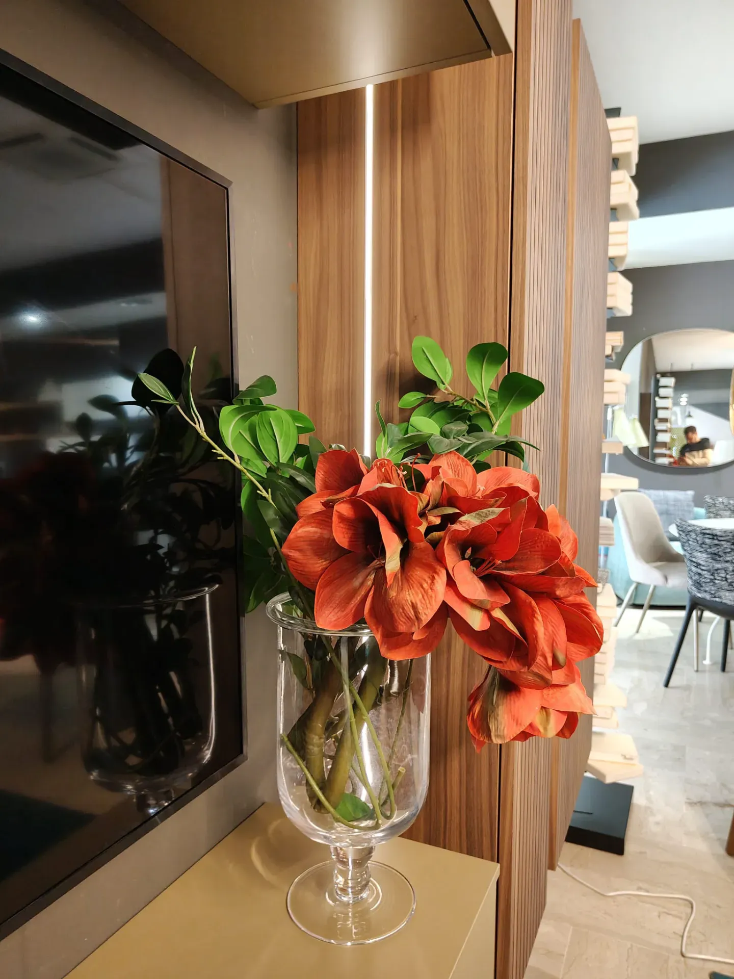 L illuminazione moderna, con sospensioni dal design scultoreo, valorizza i volumi e dona un tocco di contemporaneità, mentre gli elementi decorativi dalla lampada materica al vaso con fiori, fino alla libreria verticale completano l atmosfera con carattere e originalità.