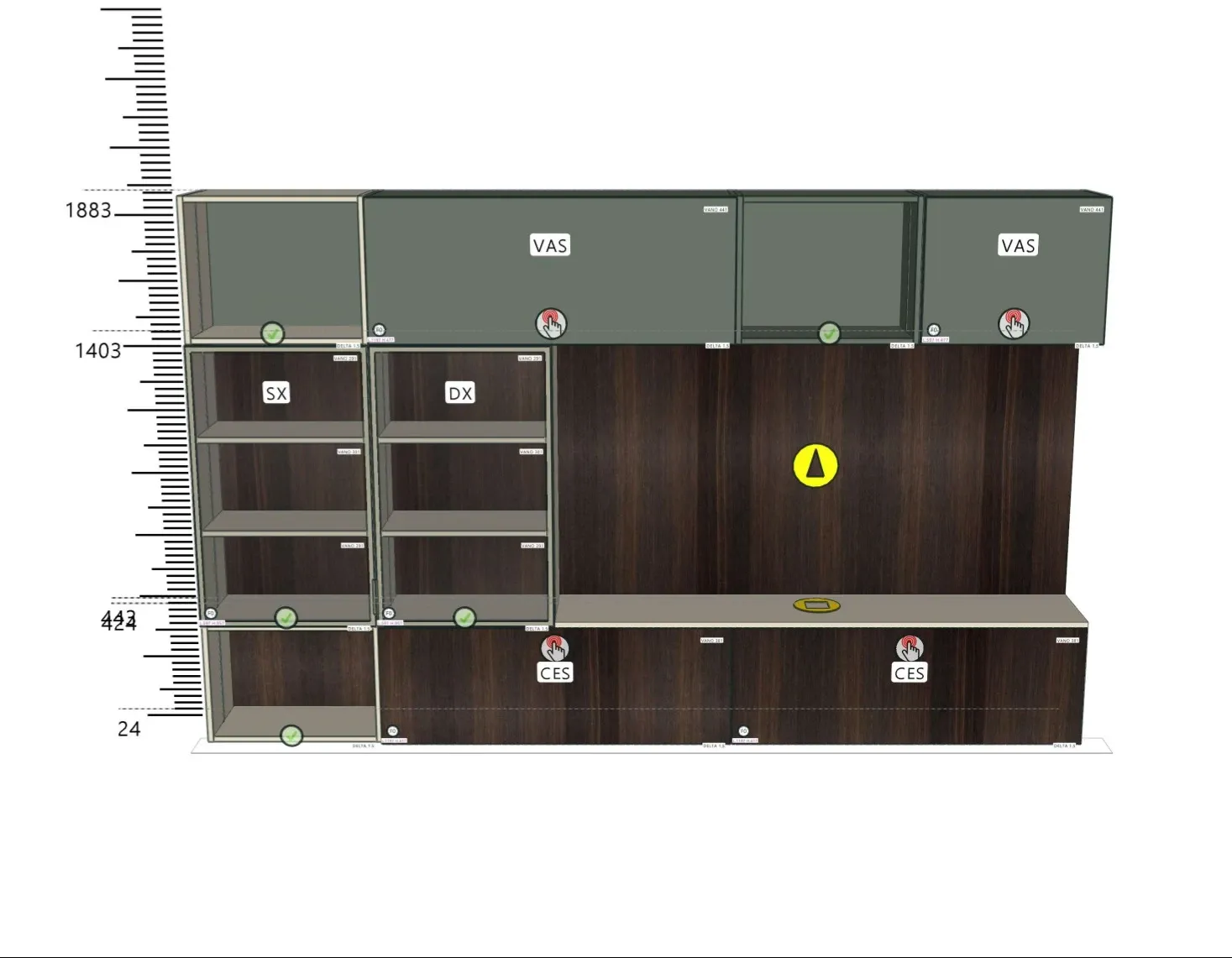 Parete attrezzata Veneta Cucine dal design moderno ed elegante, con frontali in cannettato che donano profondità e carattere alla zona giorno.