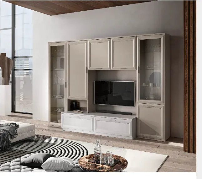 La parete attrezzata Gierre mod. j054 ha una larghezza che va da 301 a 350 cm ed è perciò ideale per locali di svariate misure e conformazioni.