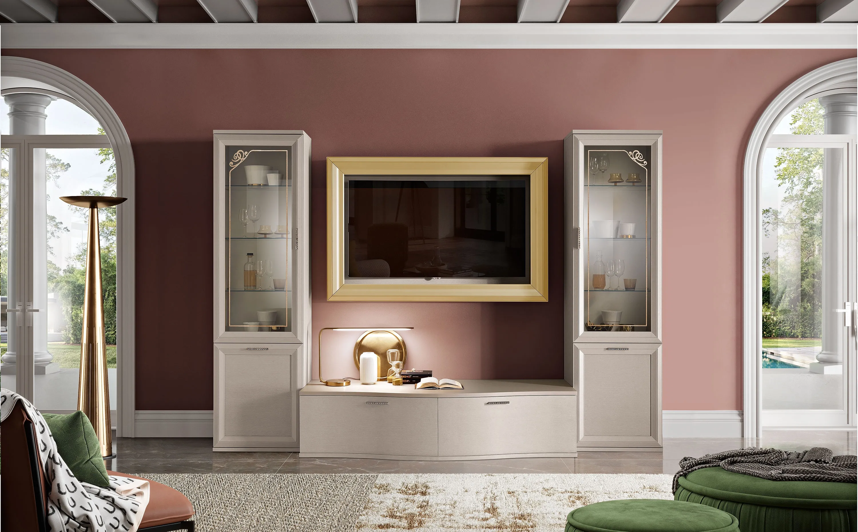 Il modello Jazz luxury composizione 139 nell'immagine ha una larghezza che va da 301 a 350 cm, risultando dunque ideale per locali di molteplici misure.