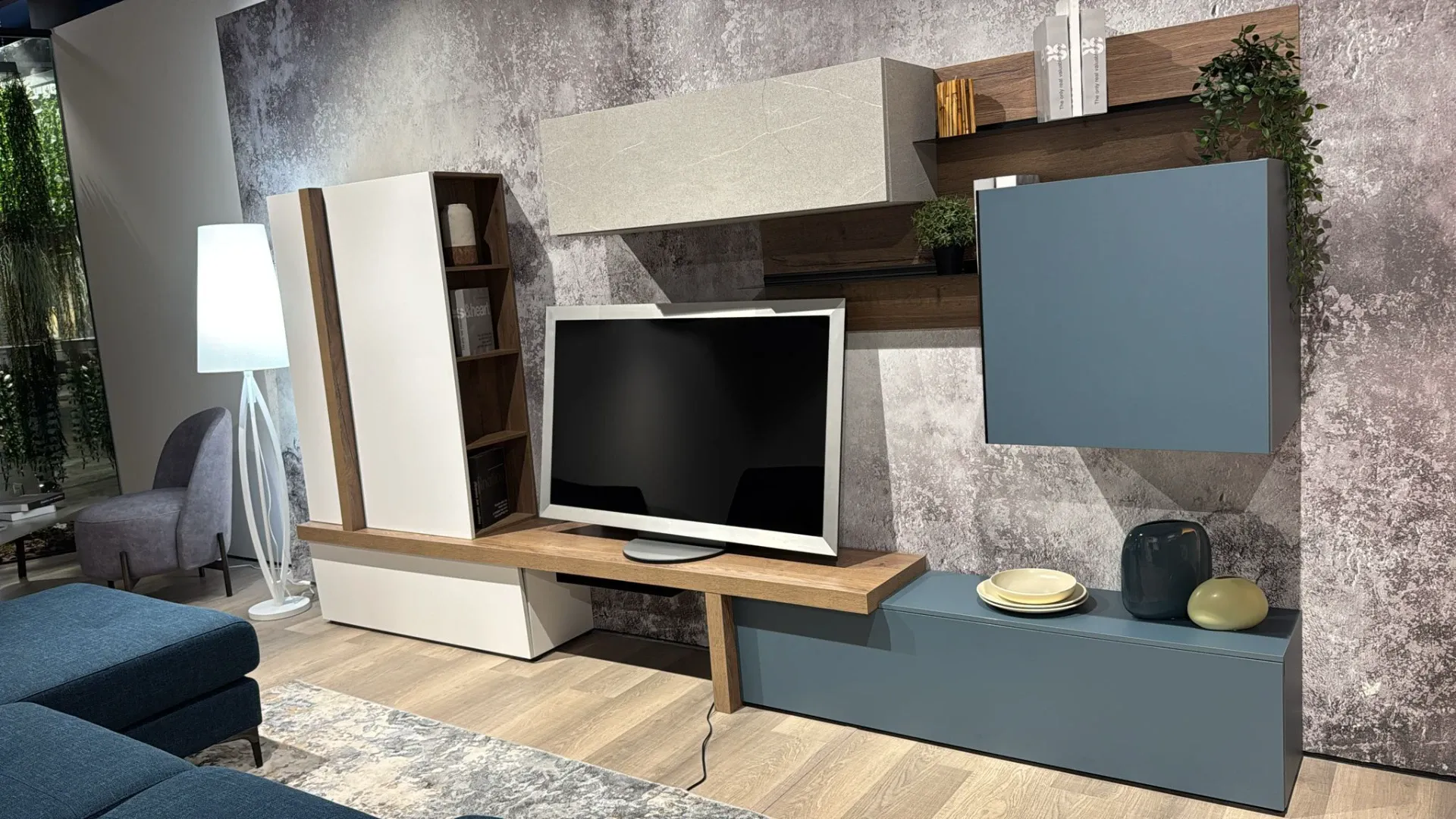 Per impreziosire un living moderno opta per una parete attrezzata che mantenga una certa coerenza di stile, come questo modello Mito a prezzo ribassato.