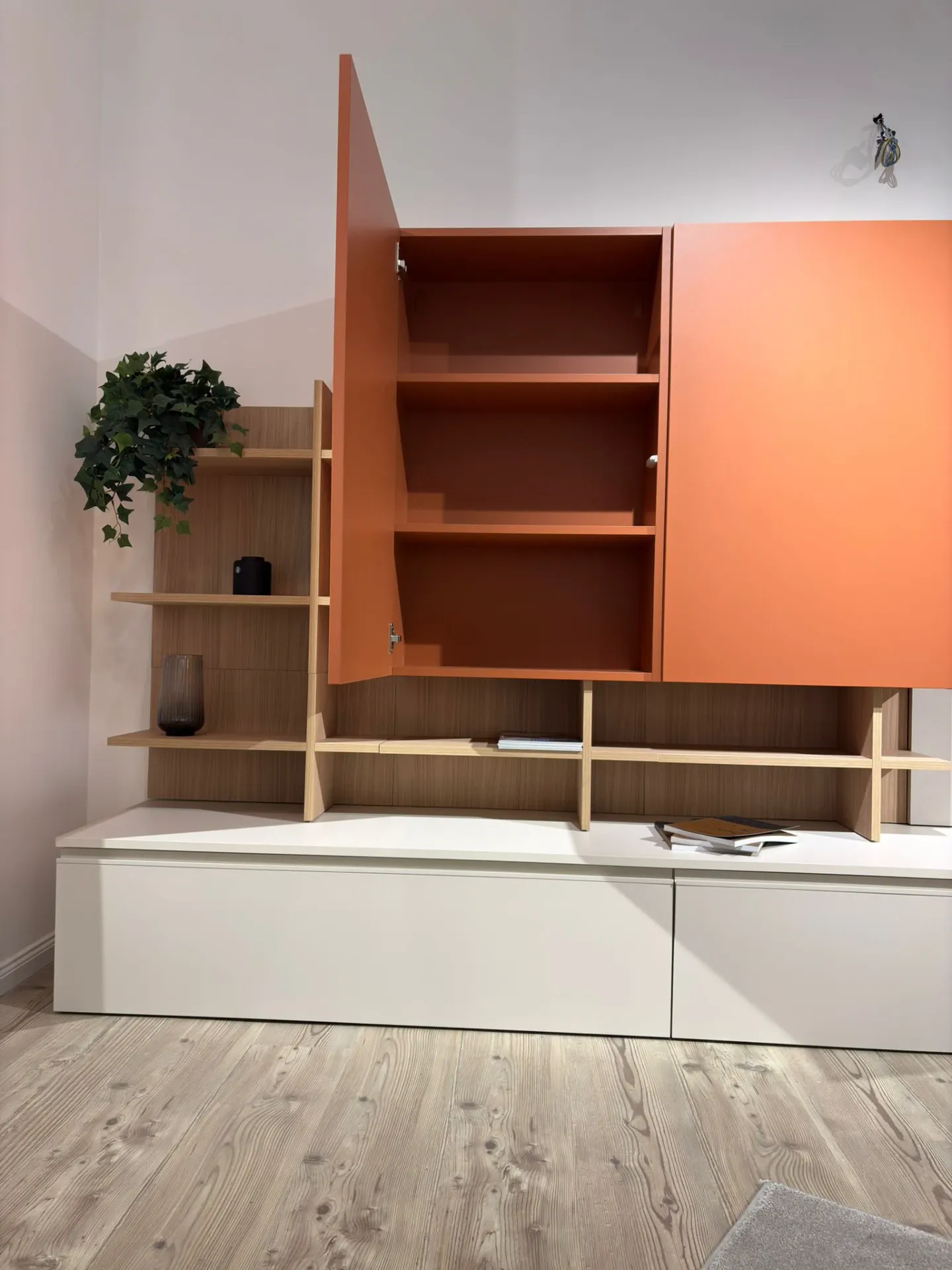 Linee decise e un design unico contraddistinguono questa composizione per il soggiorno, rendendola ideale per valorizzare un luogo in stile moderno.