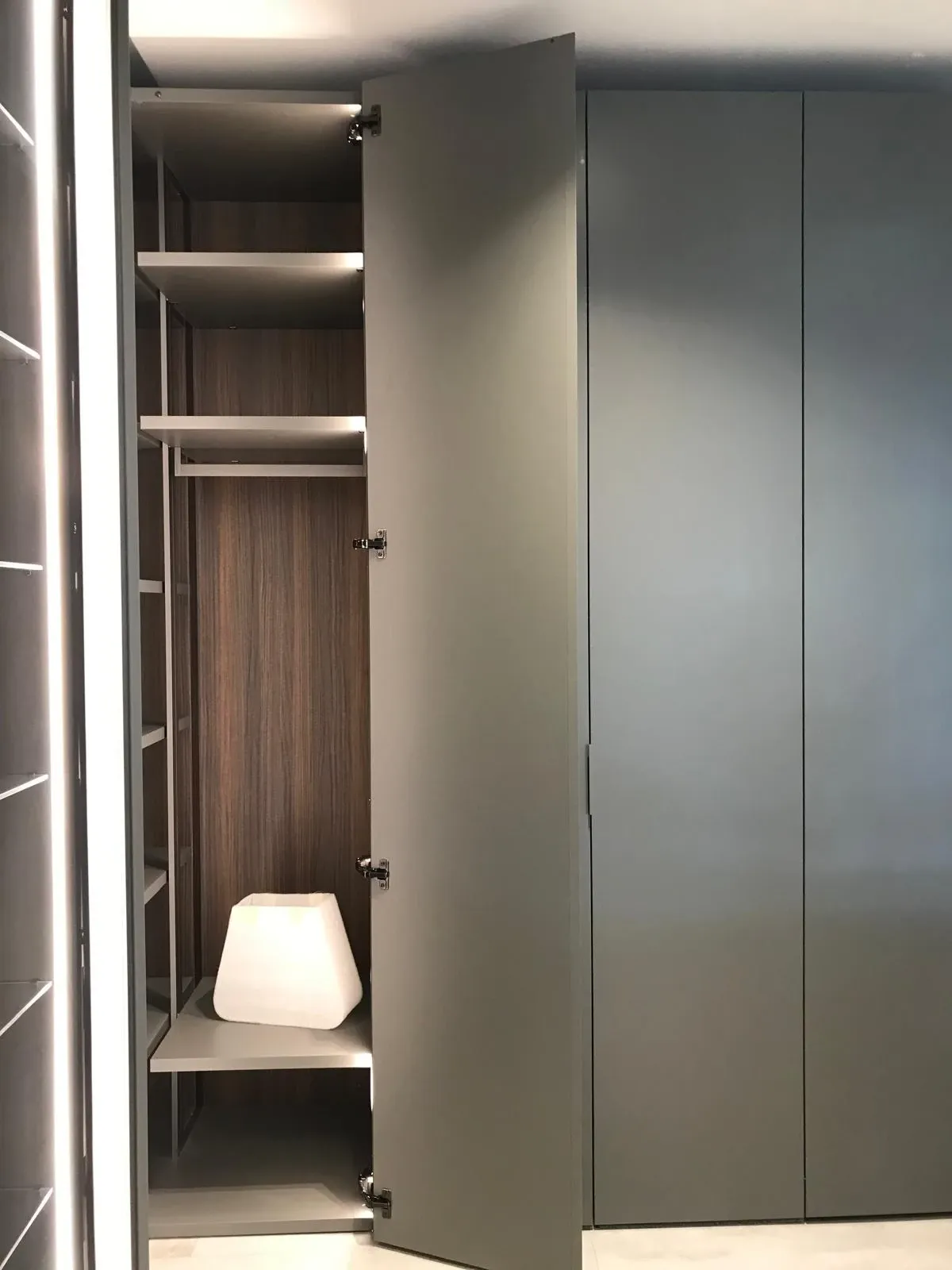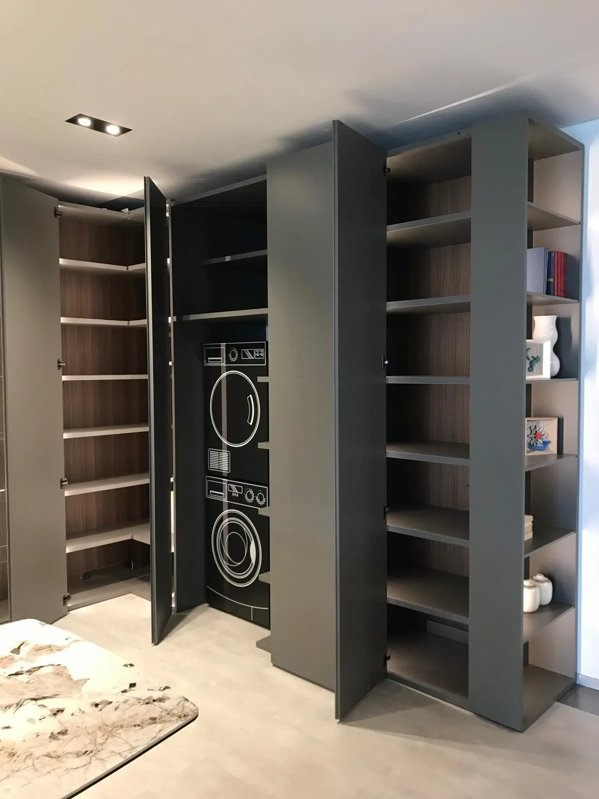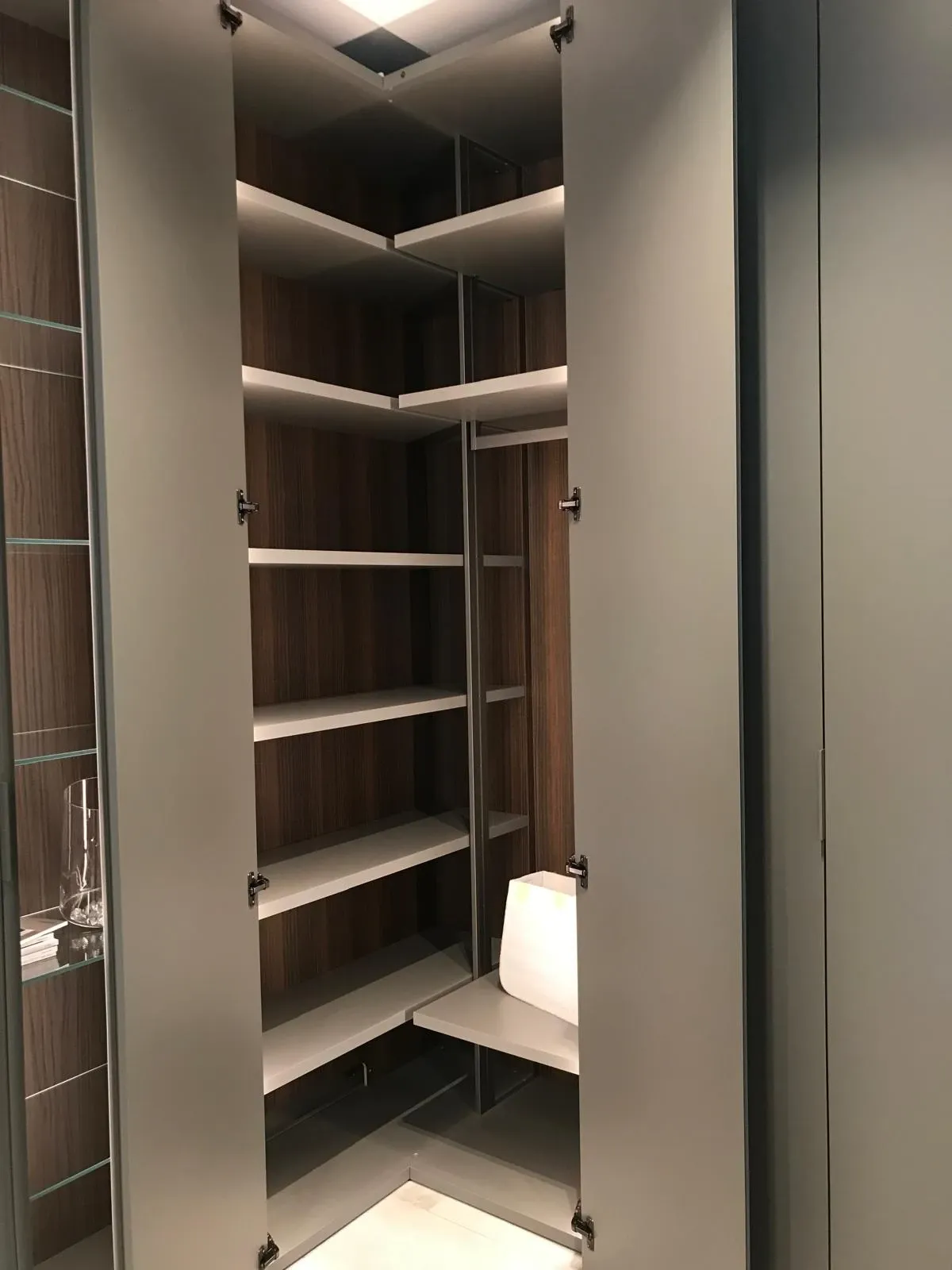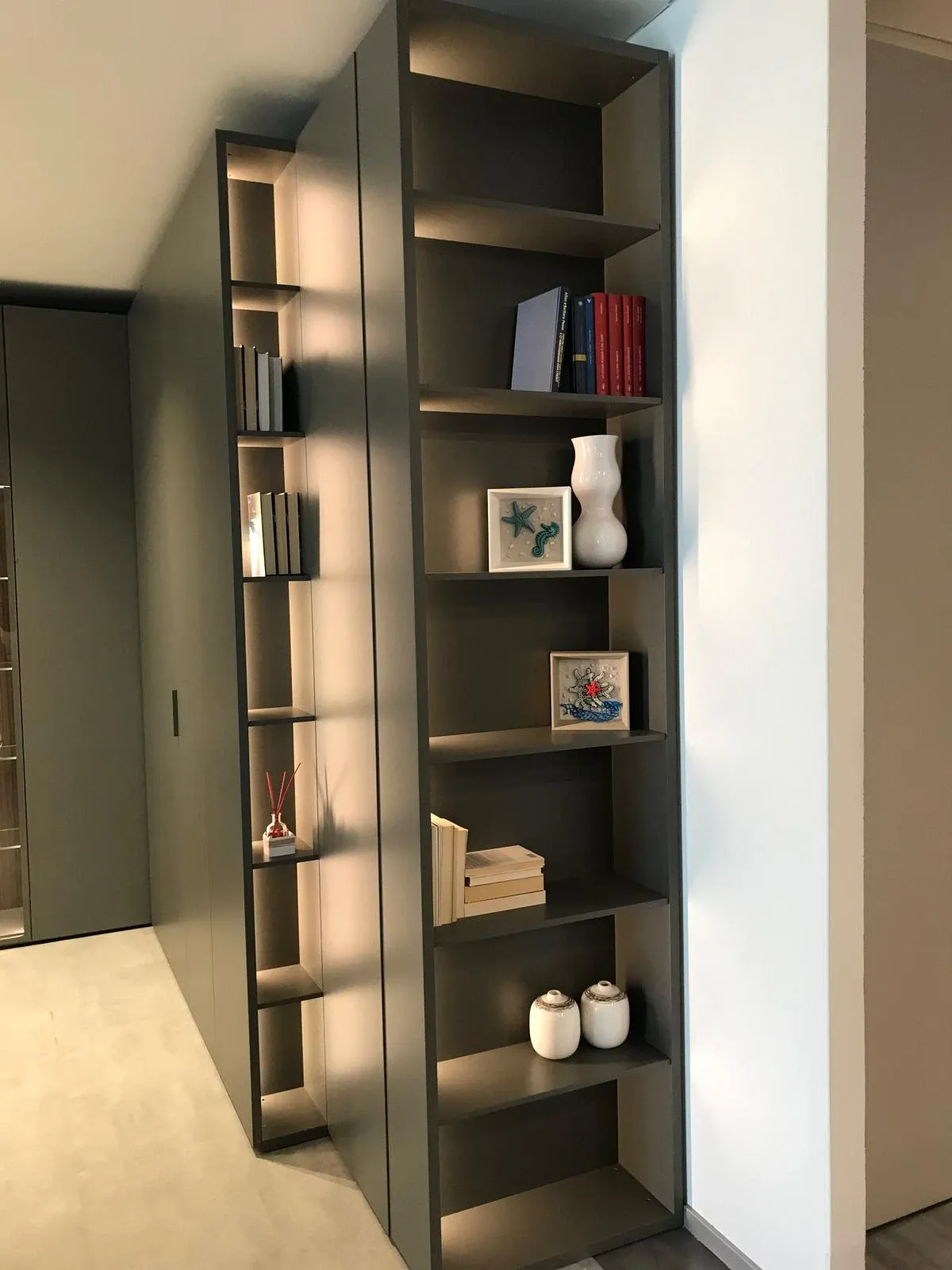 - Uno stile unico e materiali durevoli connotano tutte le pareti attrezzate del noto e rinomato brand: il modello nella fotografia, ad esempio, è in laccato opaco.