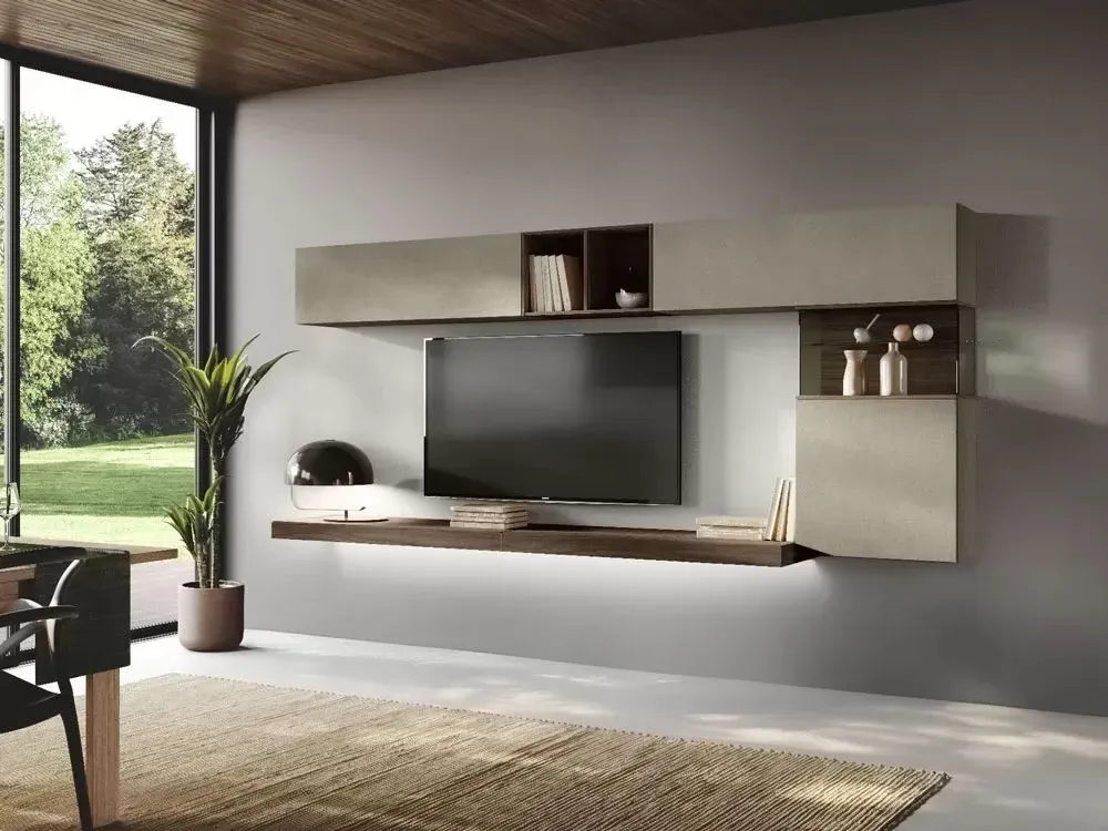 Completa l'arredamento del tuo living con un mobile sospese di gran classe: la composizione nella fotografia saprà completare lo spazio usufruendo al meglio di ogni angolo.