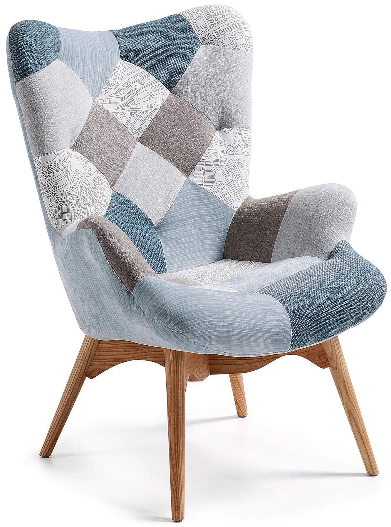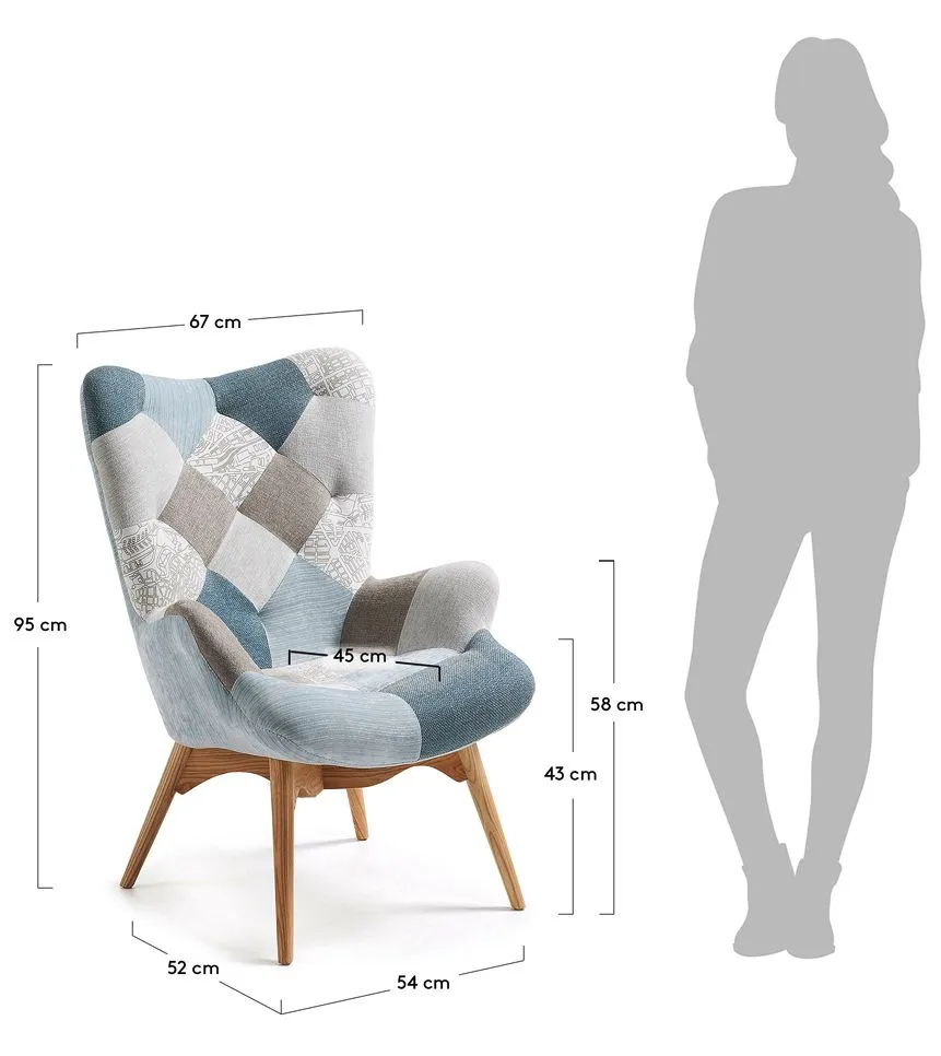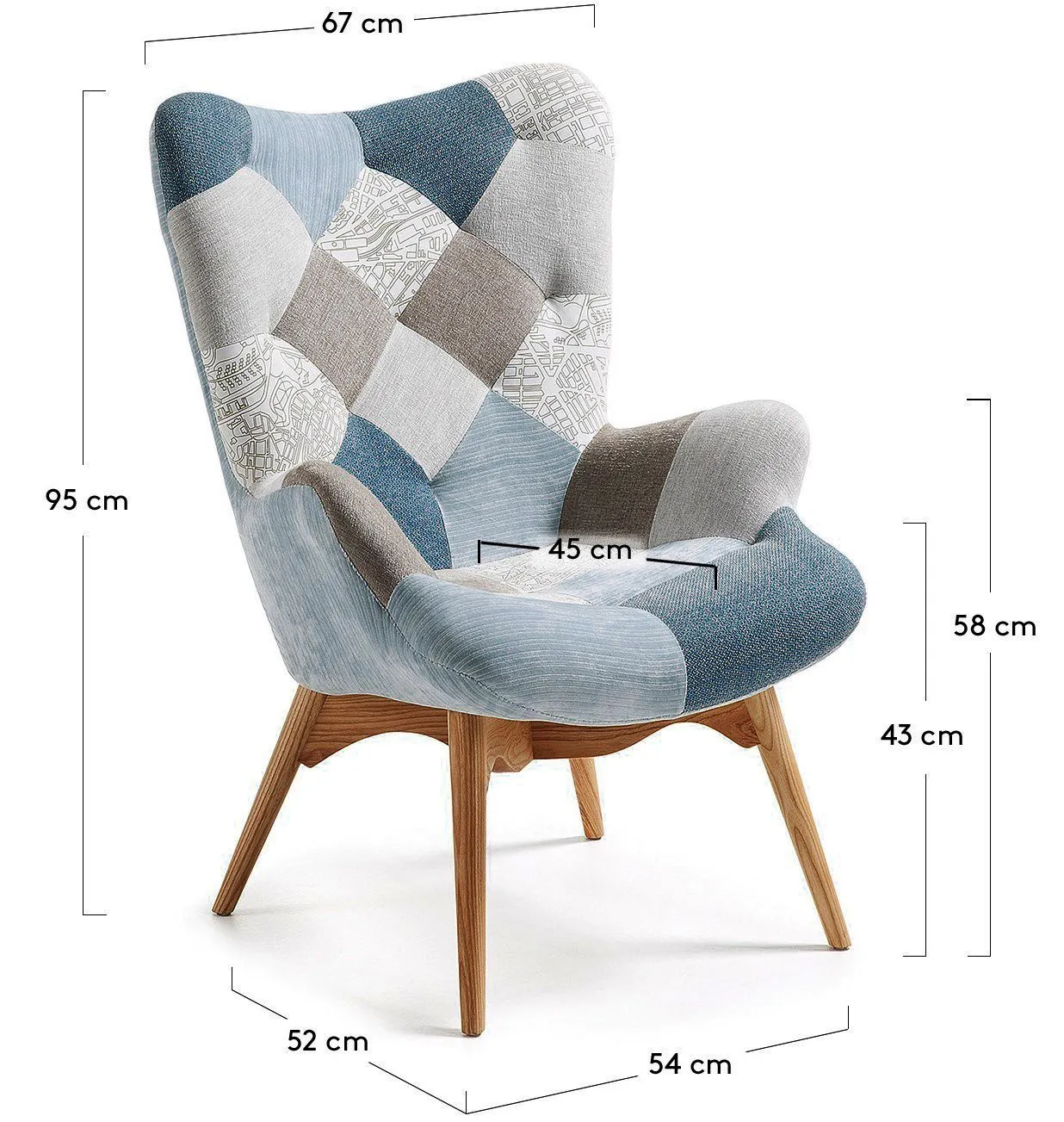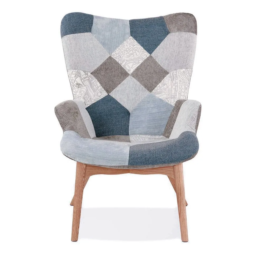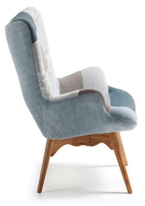 Stile scandinavo per la poltrona Mobilike PATCHWORK modello ML 377 imbottita con braccioli e gambe in legno, realizzata artigianalmente. E' una seduta dal design creativo, fantasioso e funzionale, completamente rivestita in tessuto con tecnica PatchWork dalle tonalità pastello. L'imbottitura voluminosa inoltre ne garantisce il massimo comfort.