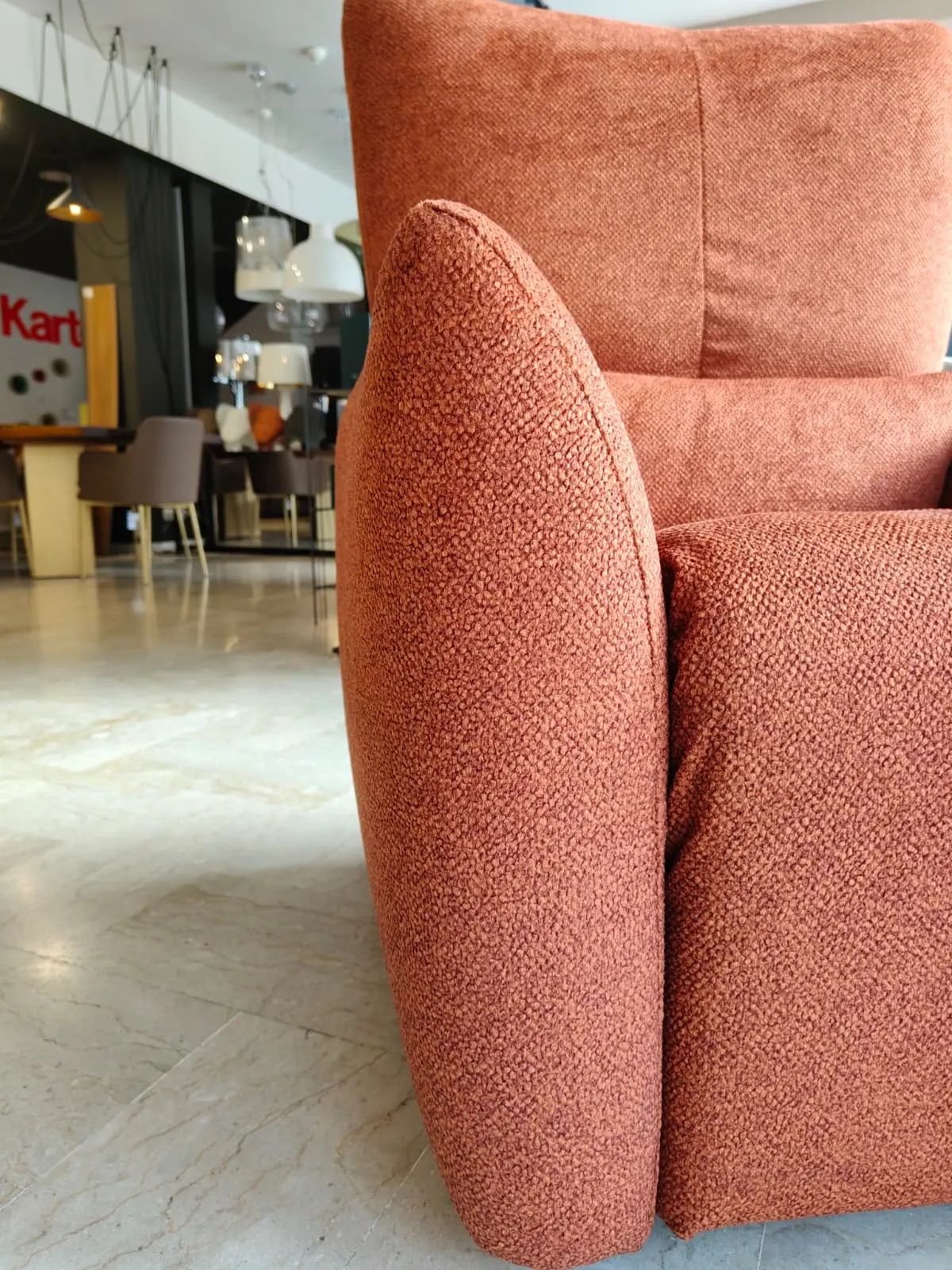 La cura dei materiali e delle proporzioni le conferisce un carattere contemporaneo ma accogliente, capace di inserirsi con armonia in ambienti diversi, dal living più moderno allo spazio dedicato al relax. È una poltrona che non chiede nulla e offre molto: un invito a rallentare, a concedersi un momento di pausa, a ritrovare un comfort semplice ma ricercato.