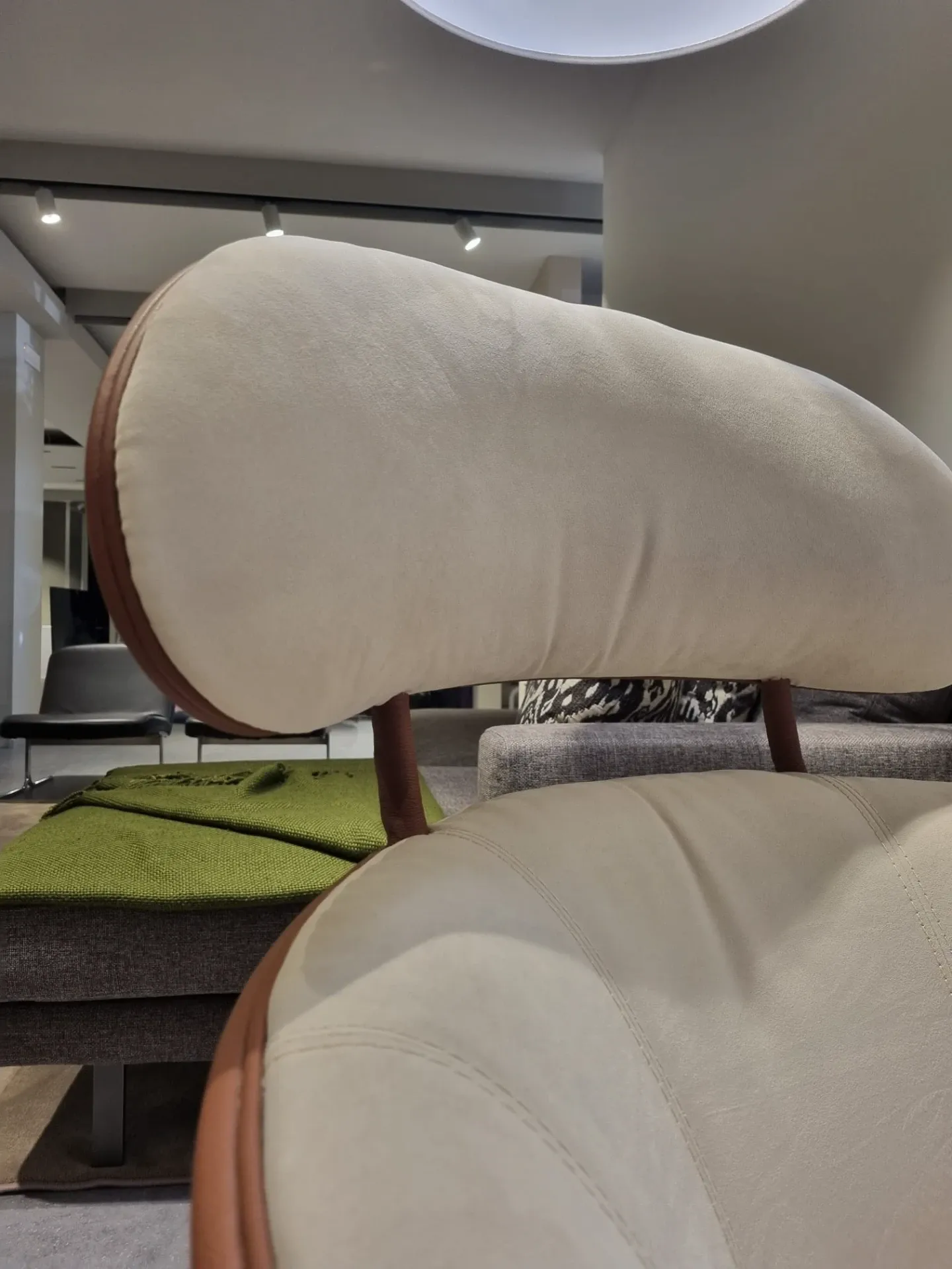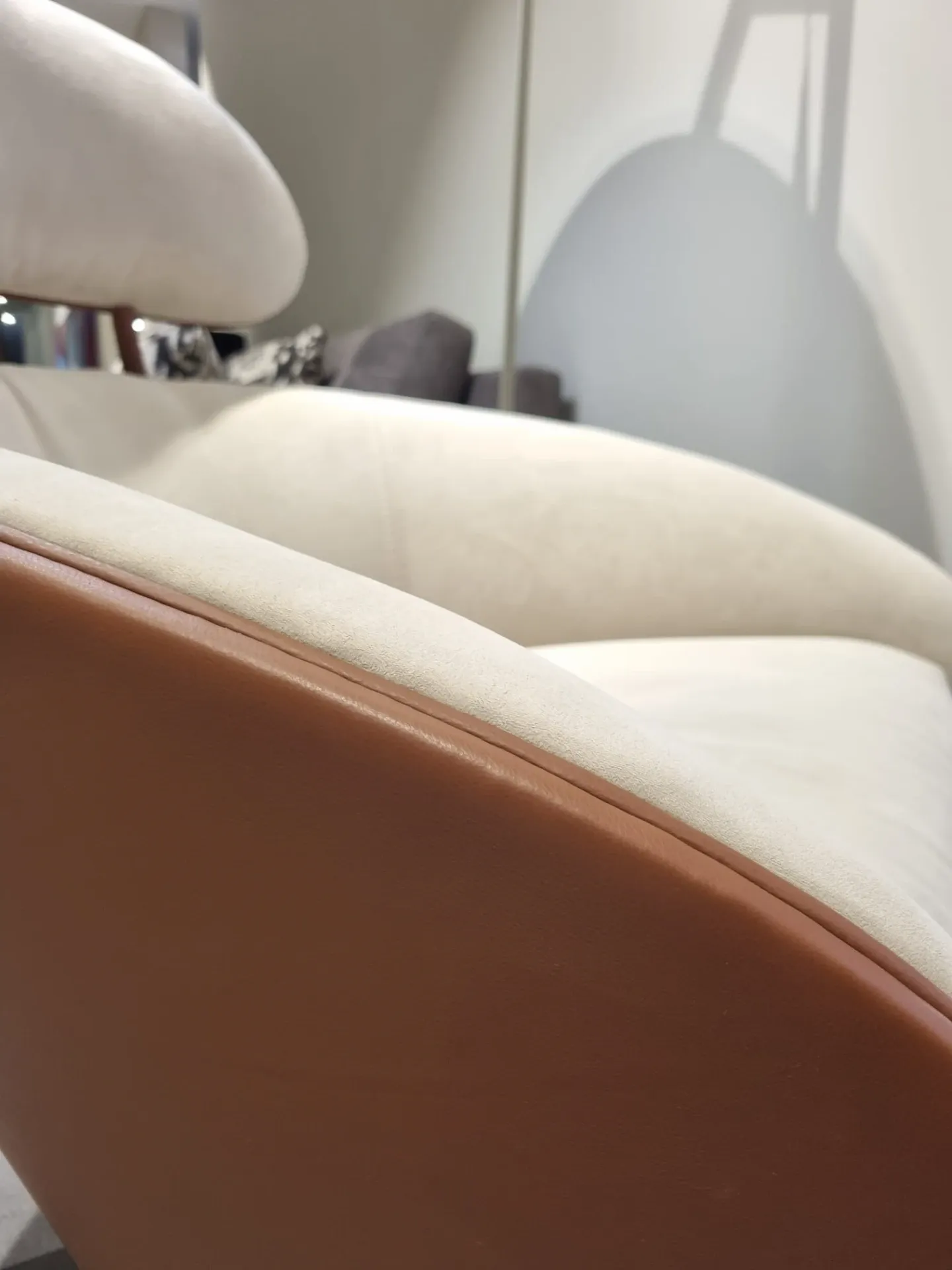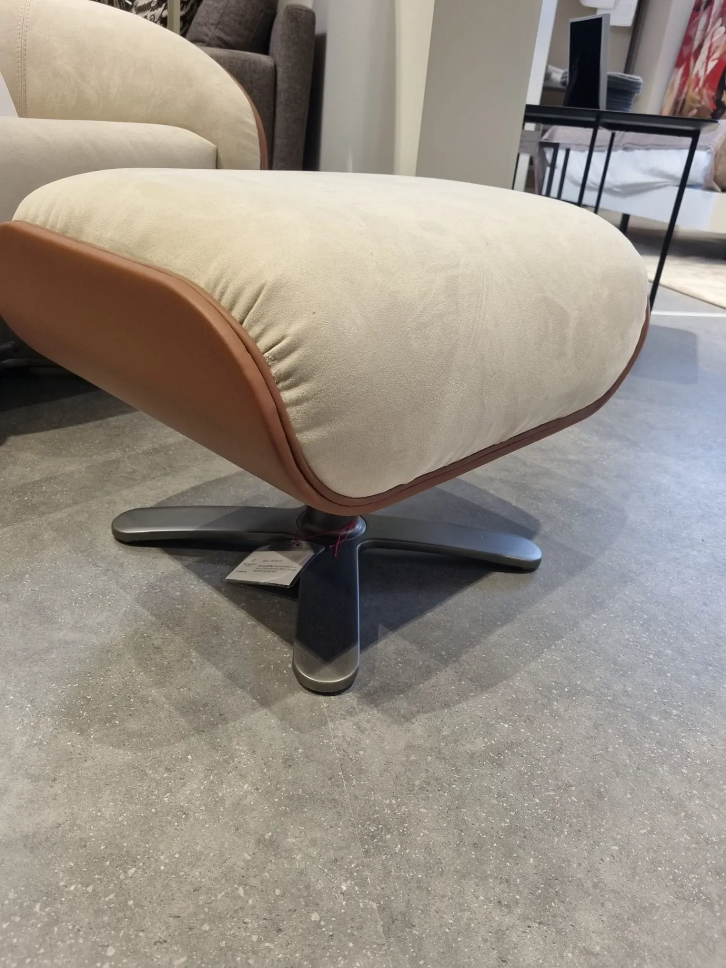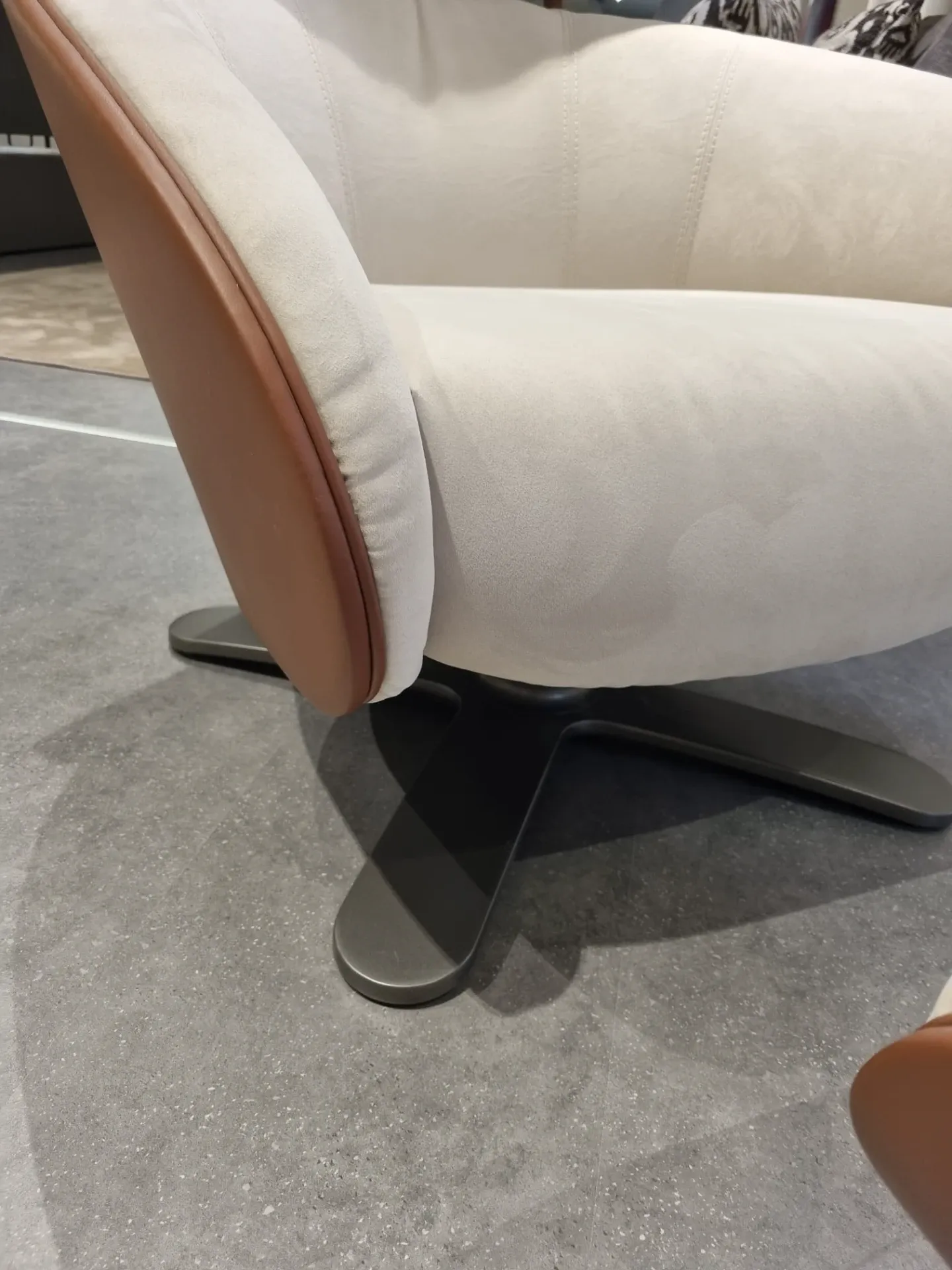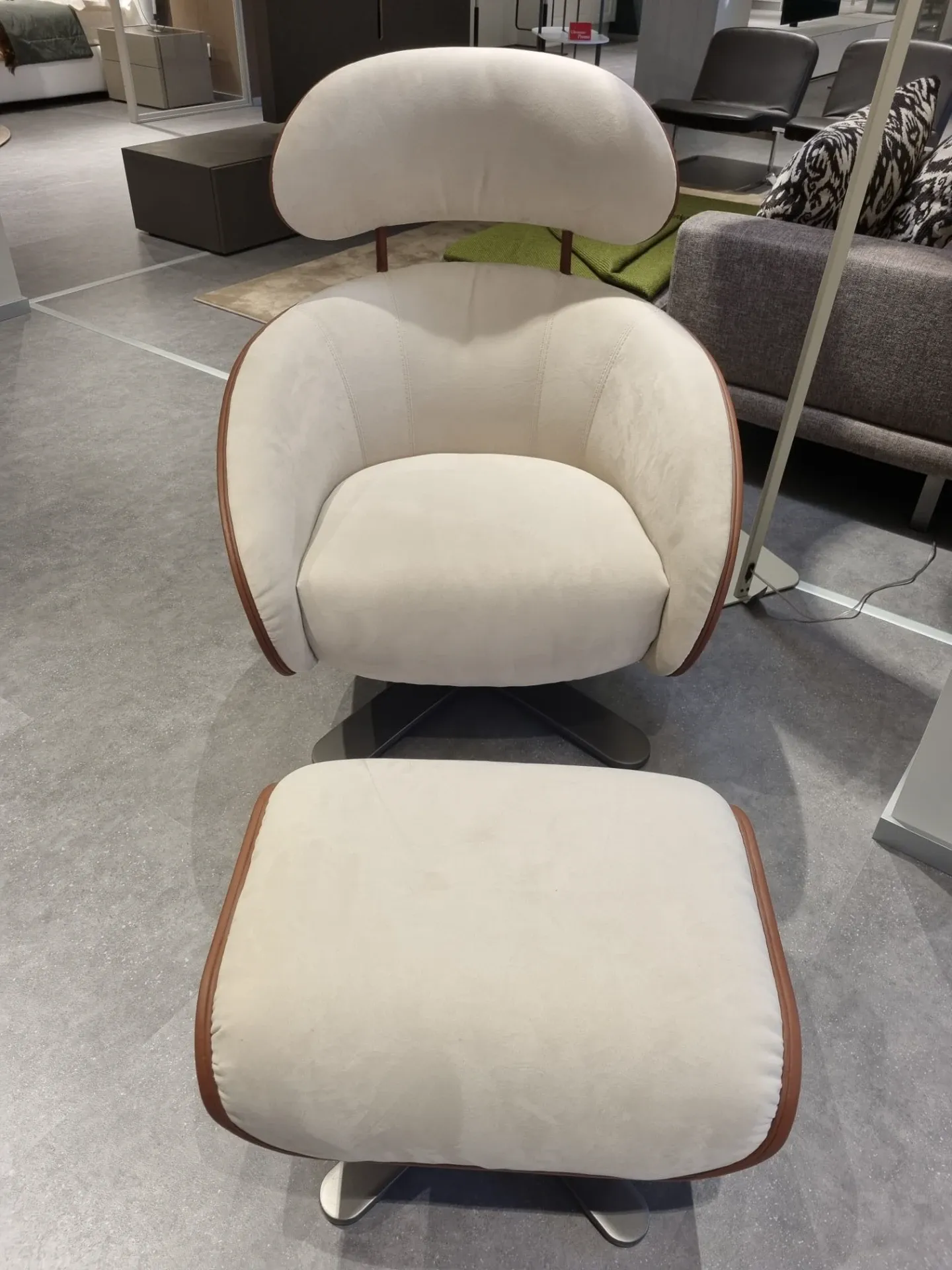 Poltrona girevole mod. Coconut in riv. PELLE BENNU BRANDY BLUSH 607 con poggiapiedi abbinato.