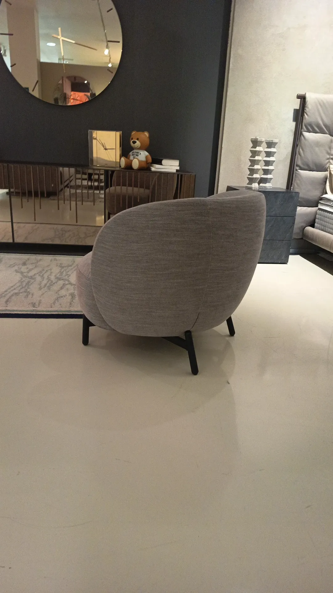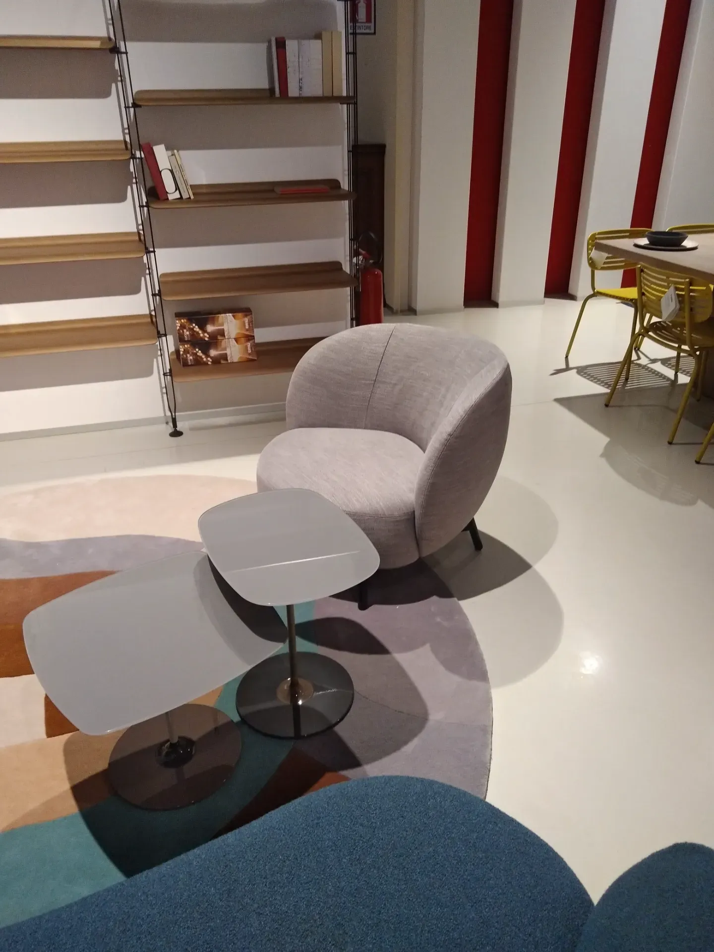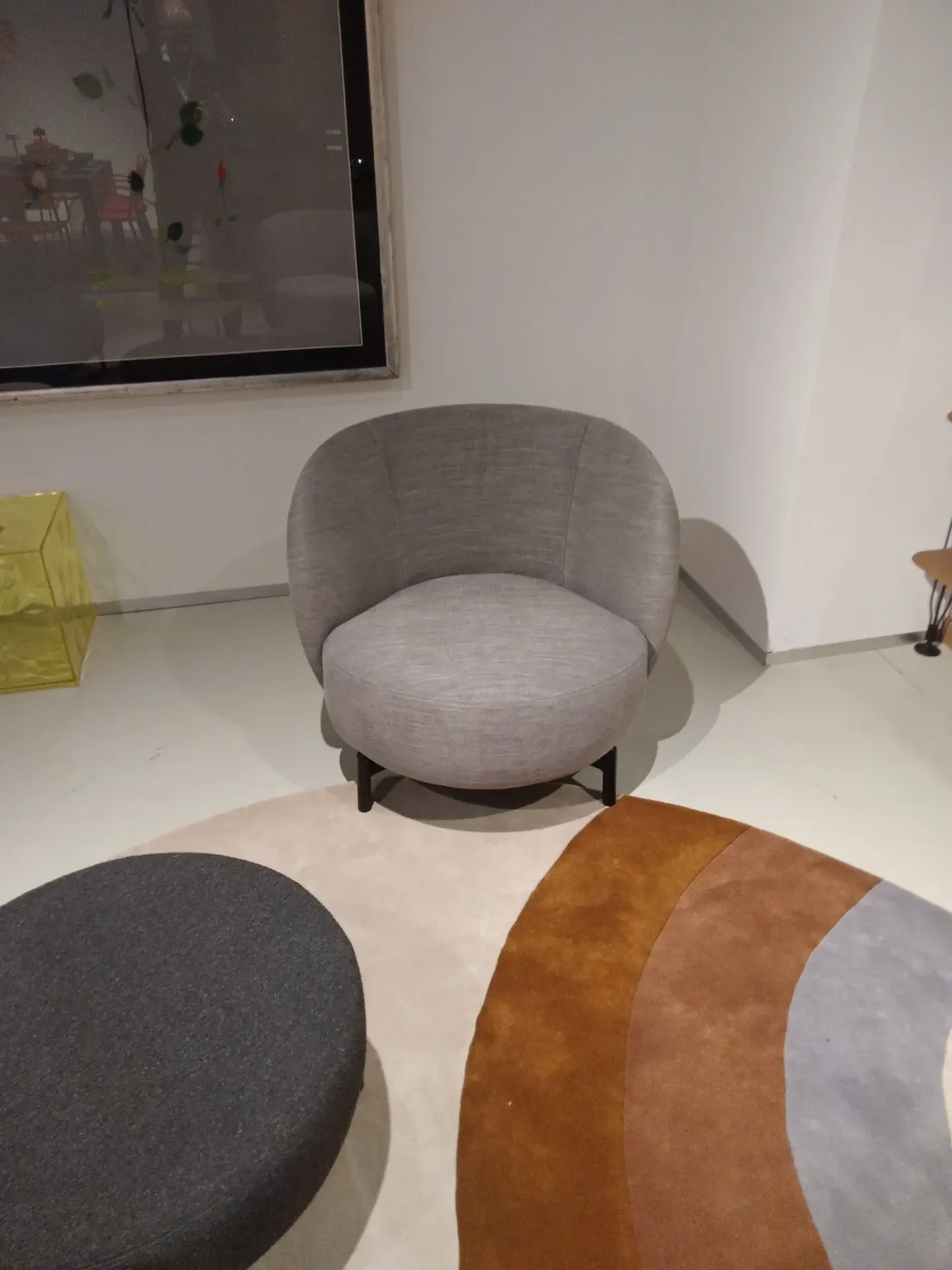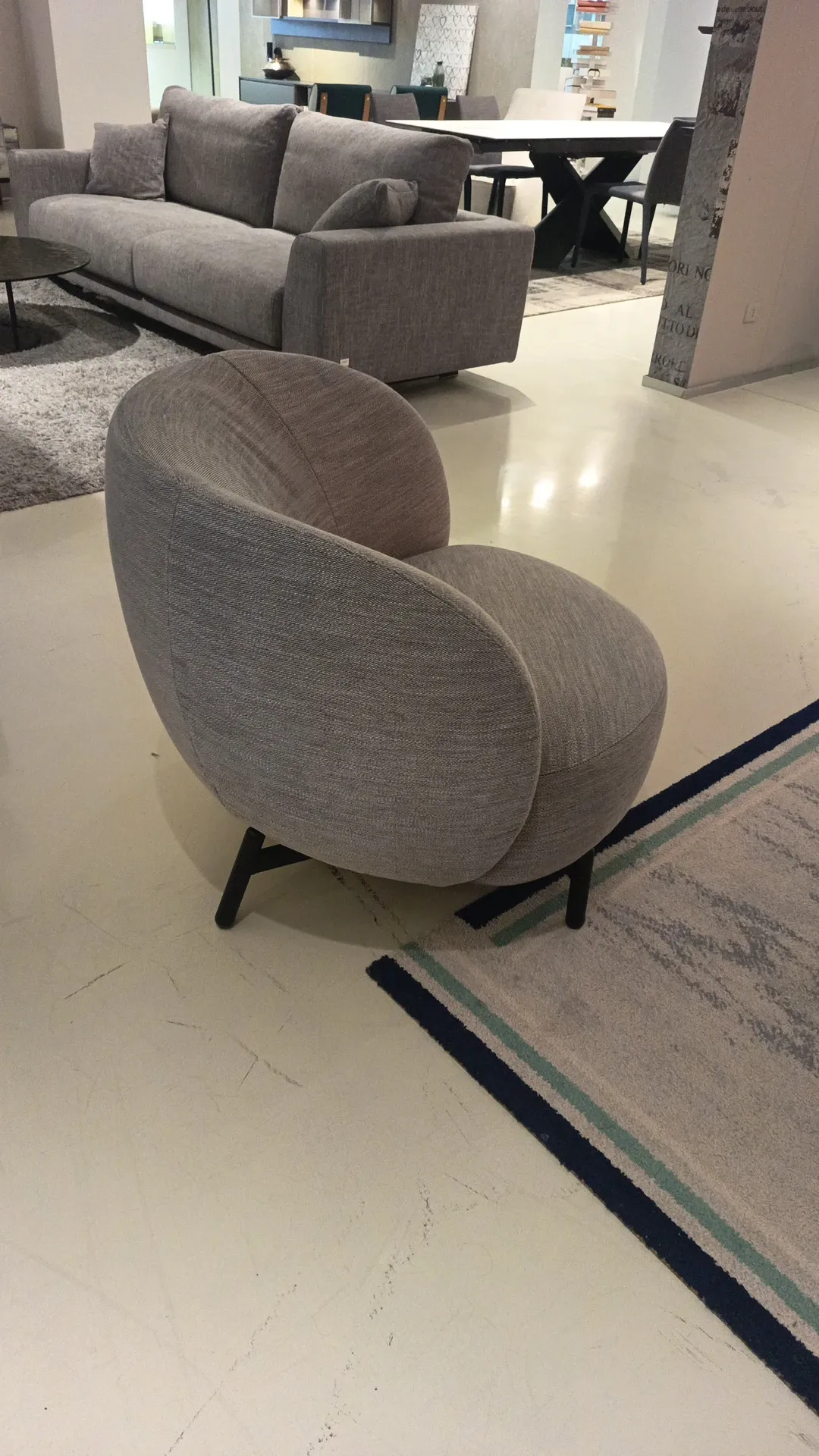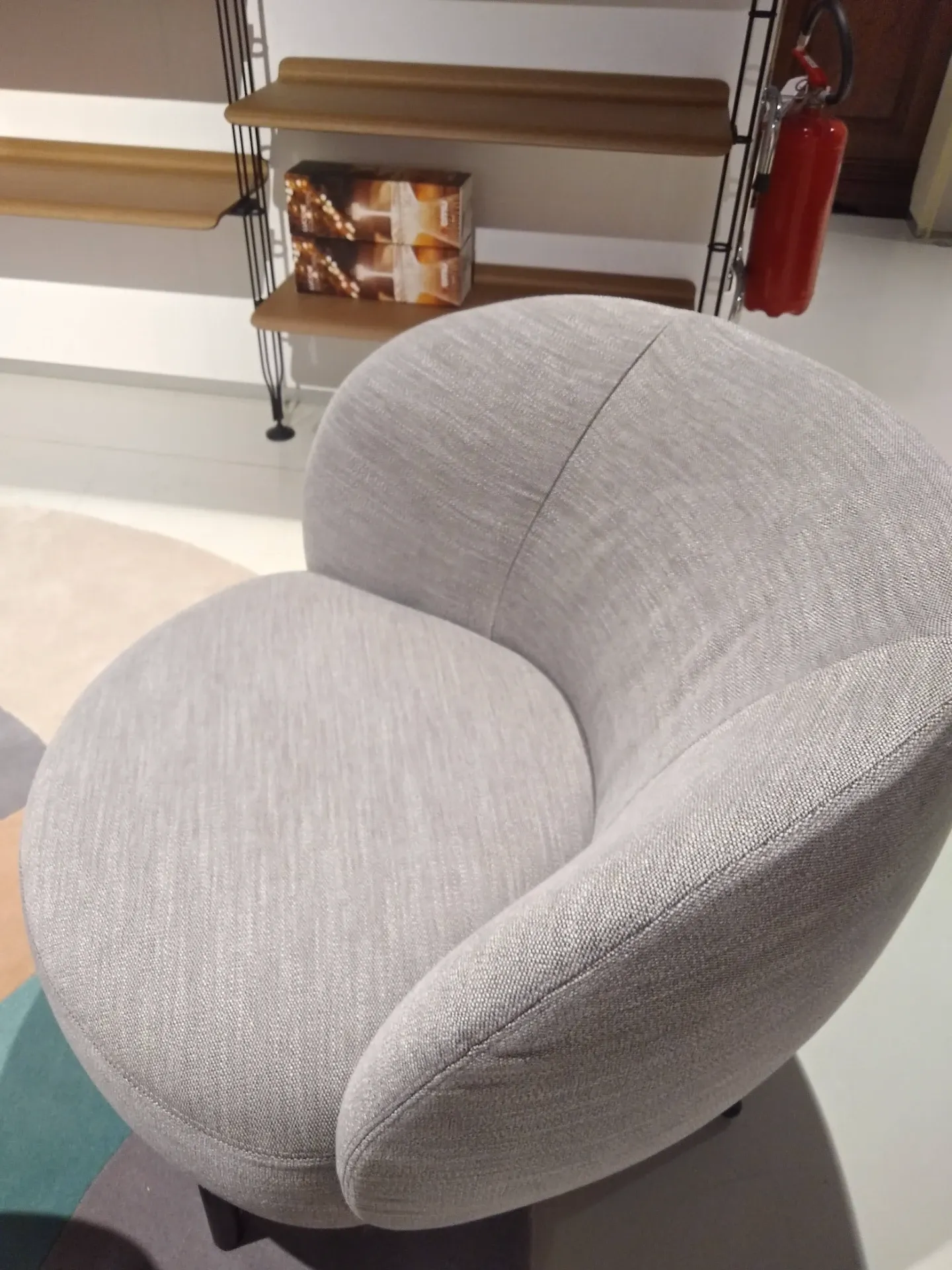 Poltrona Kartell modello Lunam rivestita in tessuto grigio chiaro, dimensione cm.83*82*75h. Design by Patricia Urquiola, molto confortevole dal forme curve e sinuose, piedini a vista colo nero.