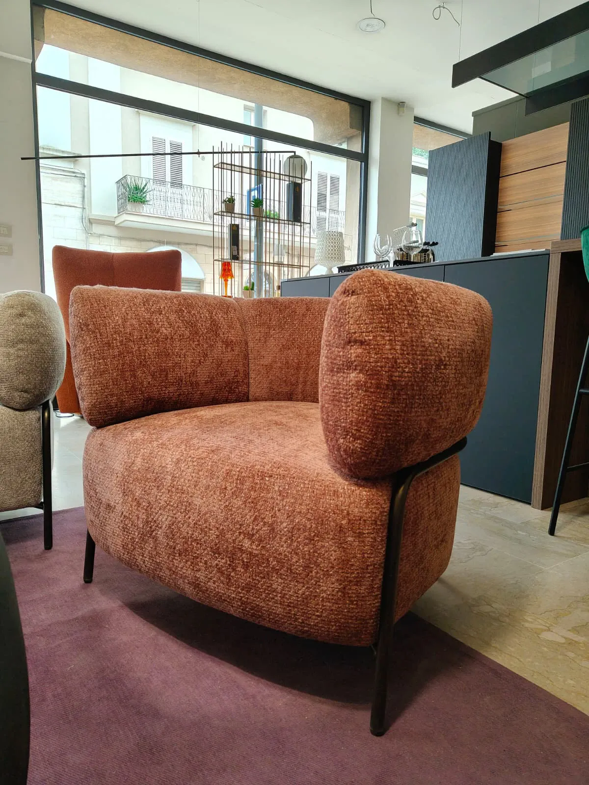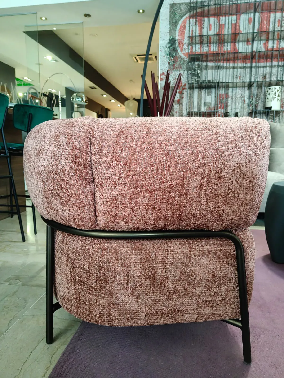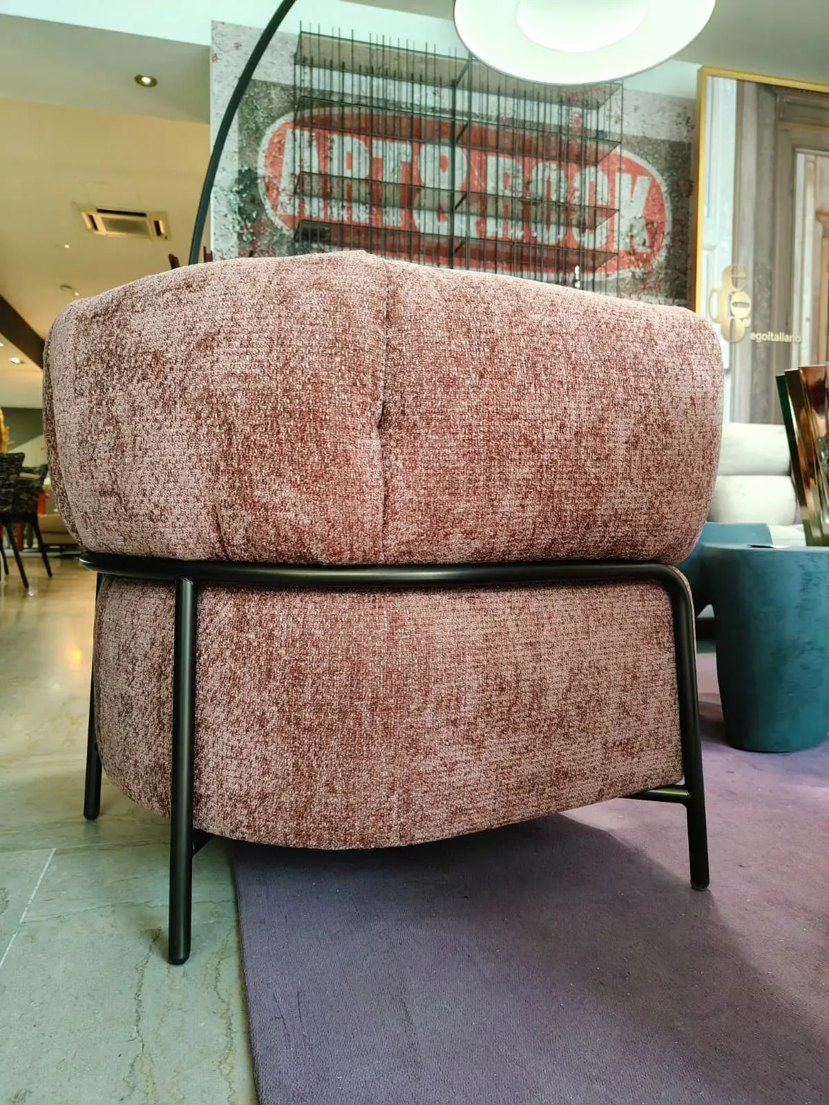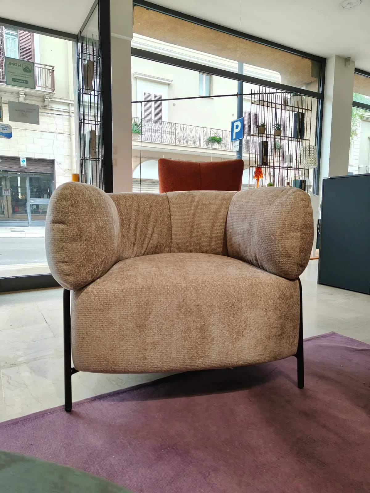 La struttura in metallo conferisce solidità e un tocco di modernità, mentre le proporzioni compatte con un altezza di 72 cm, una larghezza di 85 cm e una profondità di 75 cm la rendono perfetta per inserirsi con naturalezza sia in un soggiorno elegante che in un angolo relax più informale.