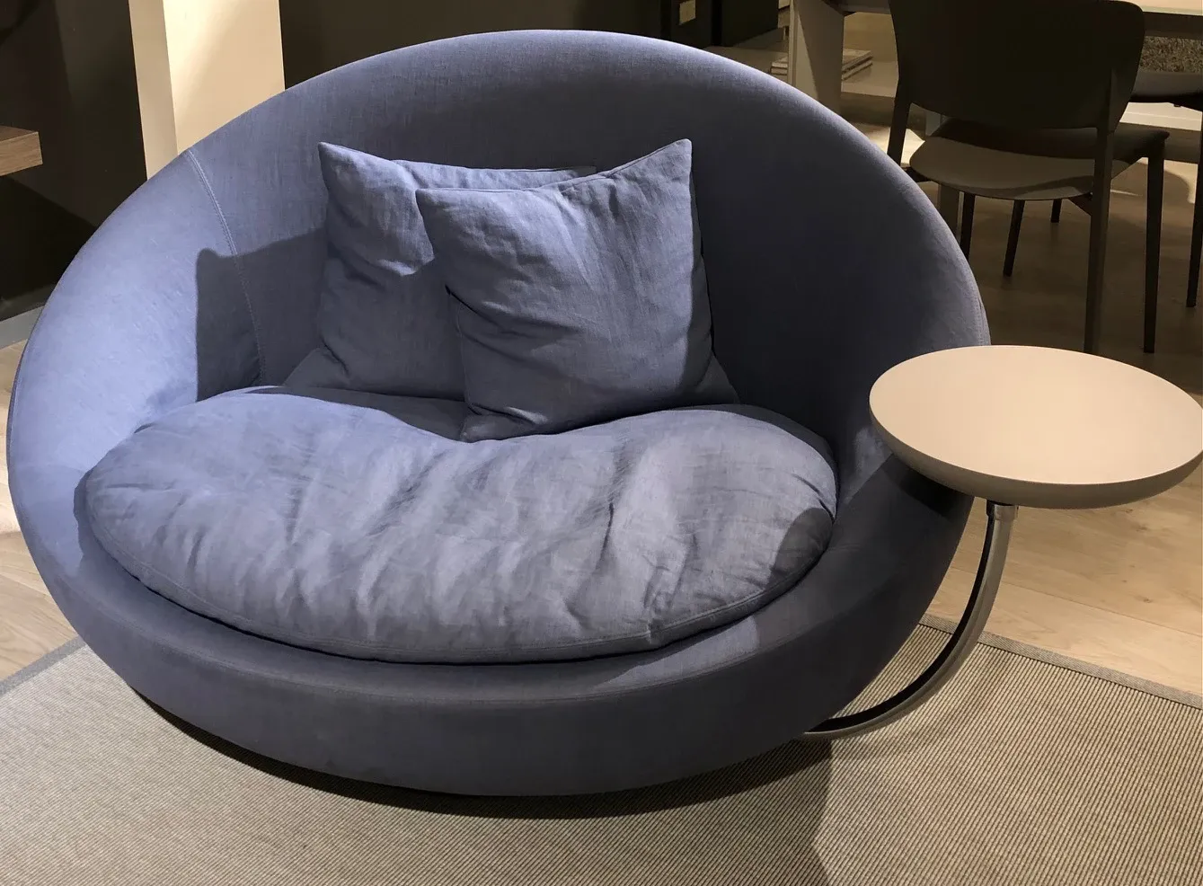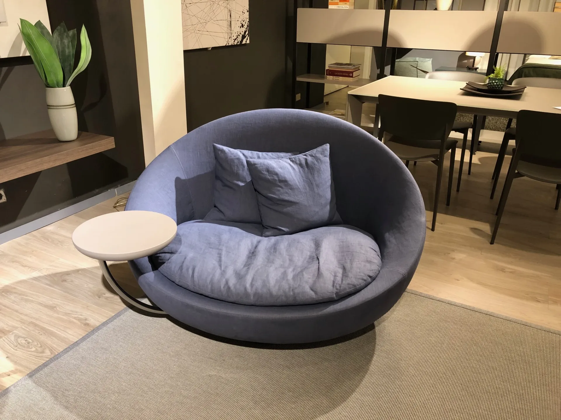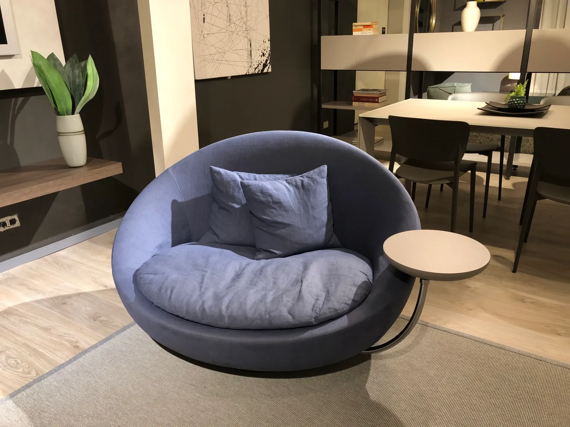 POLTRONA CON BASE GIREVOLE MODELLO LACOON COMPLETA DI TAVOLINO ROTANTE E 2 CUSCINI ARREDA , VISIONABILE PRESSO IL NOSTRO SHOWROOM DI LISSONE MB