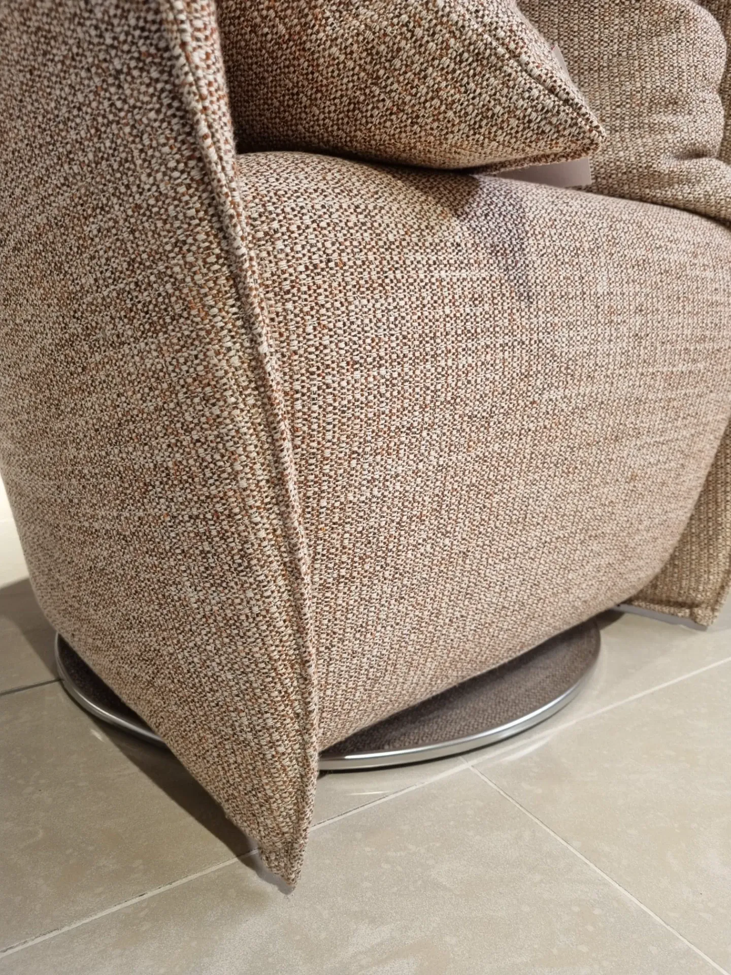 Disponibile nella versione con base girevole in tessuto IRIS 42 cotto.