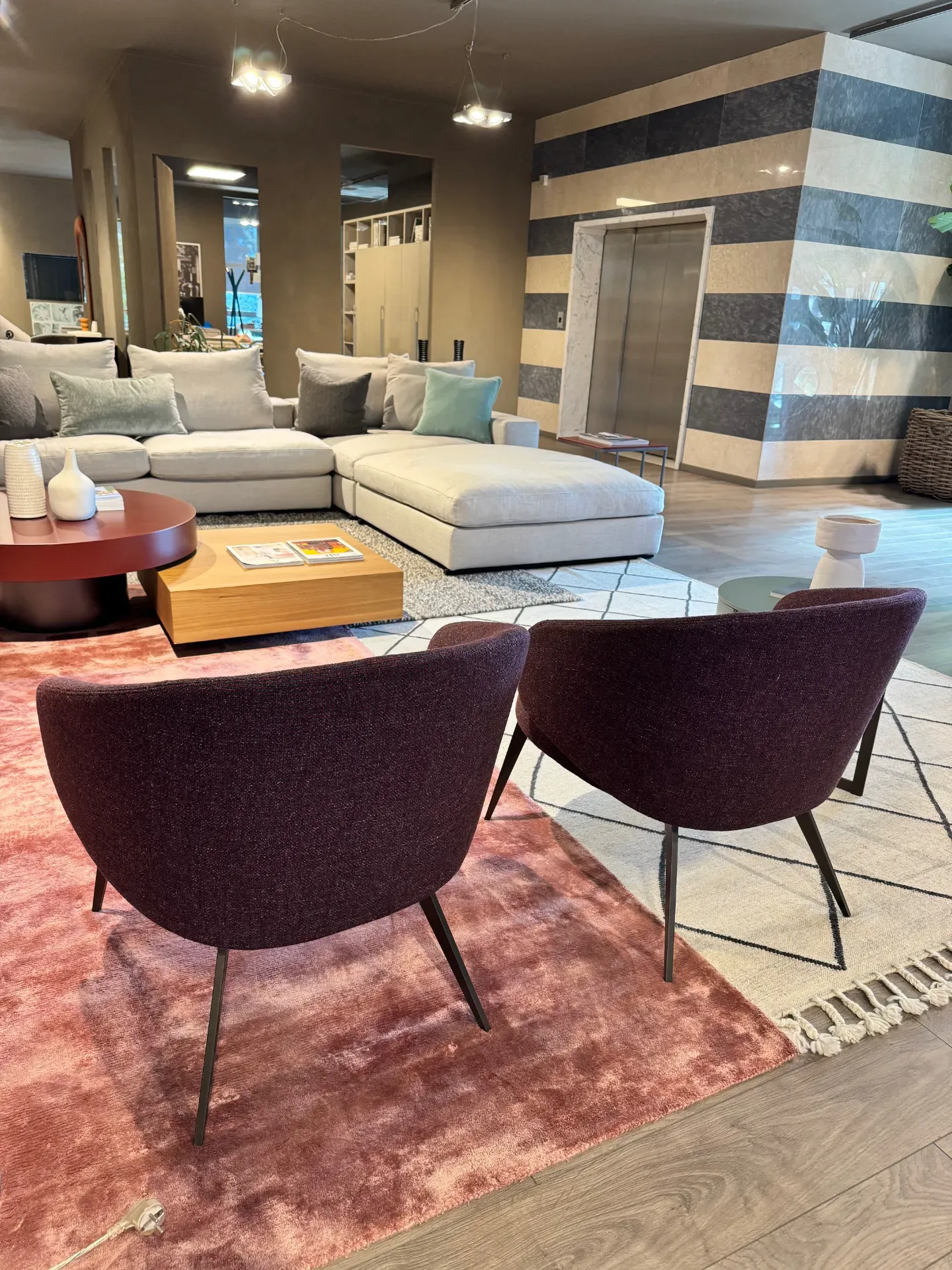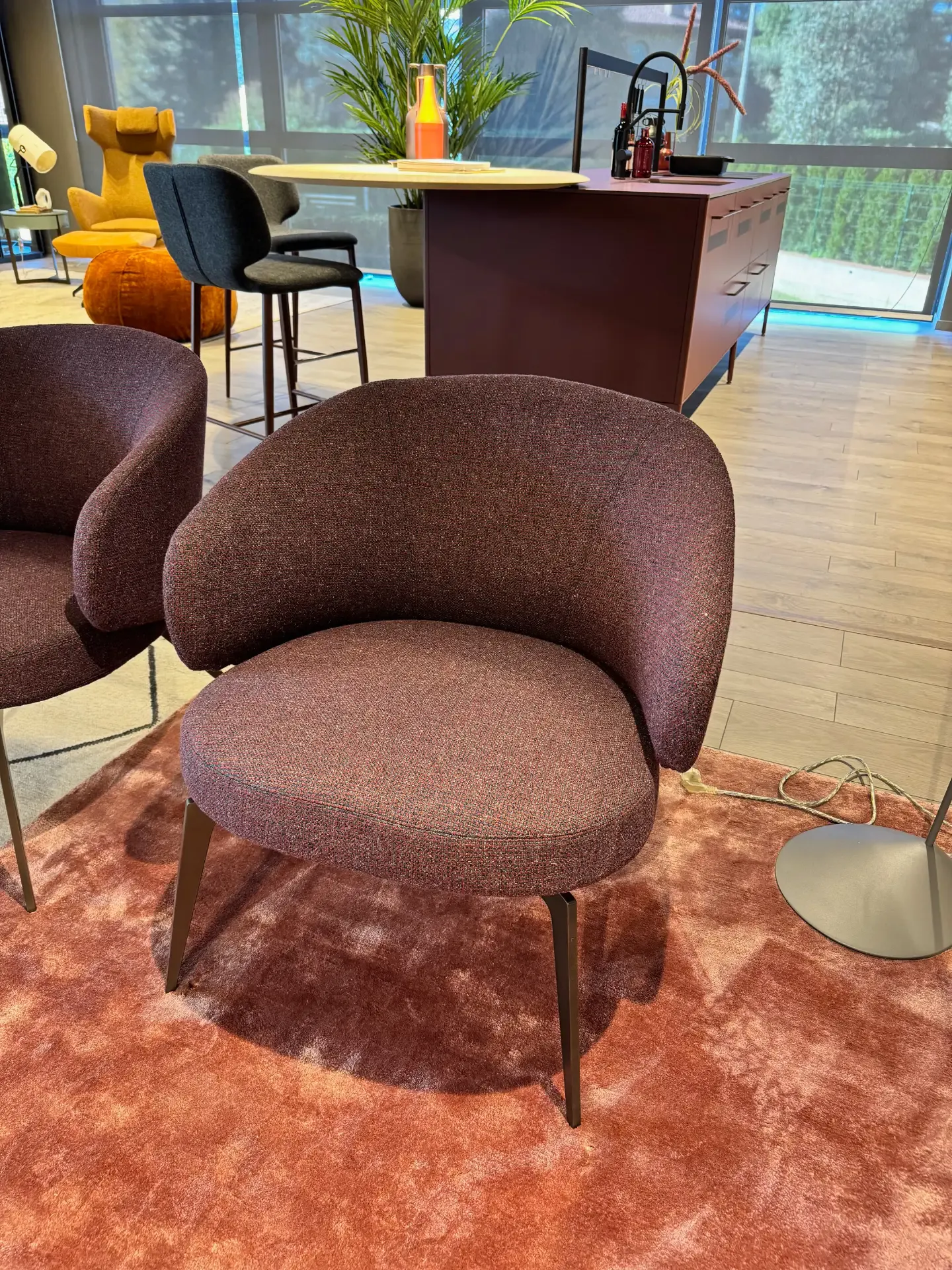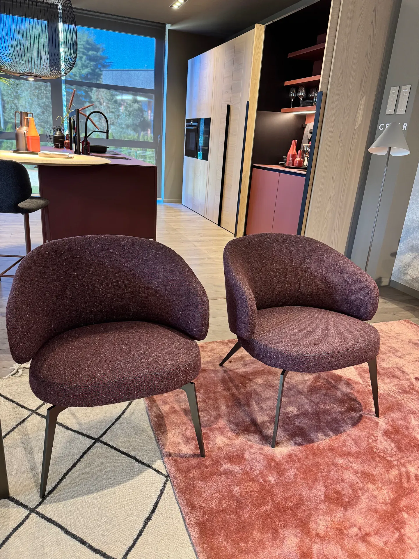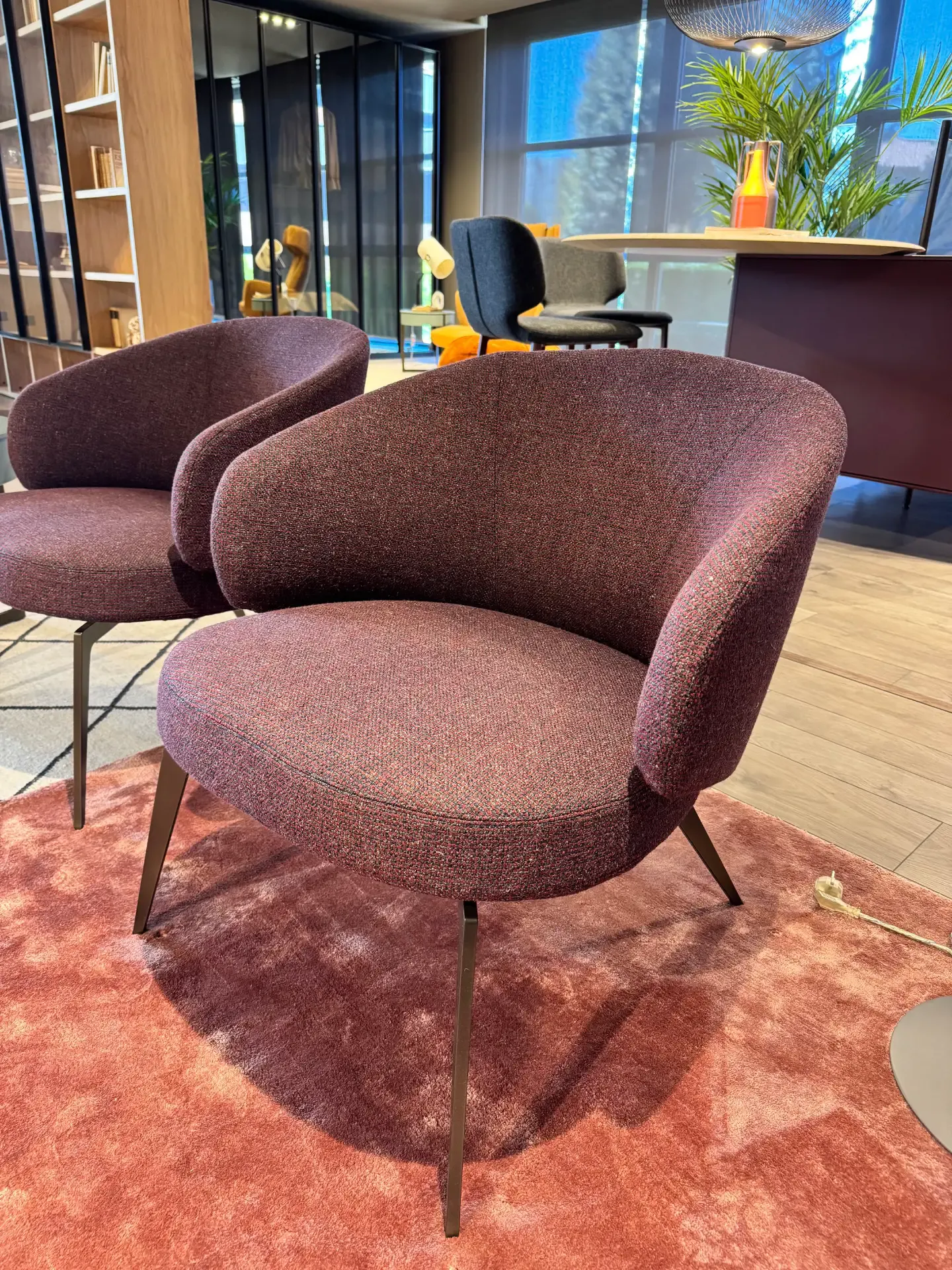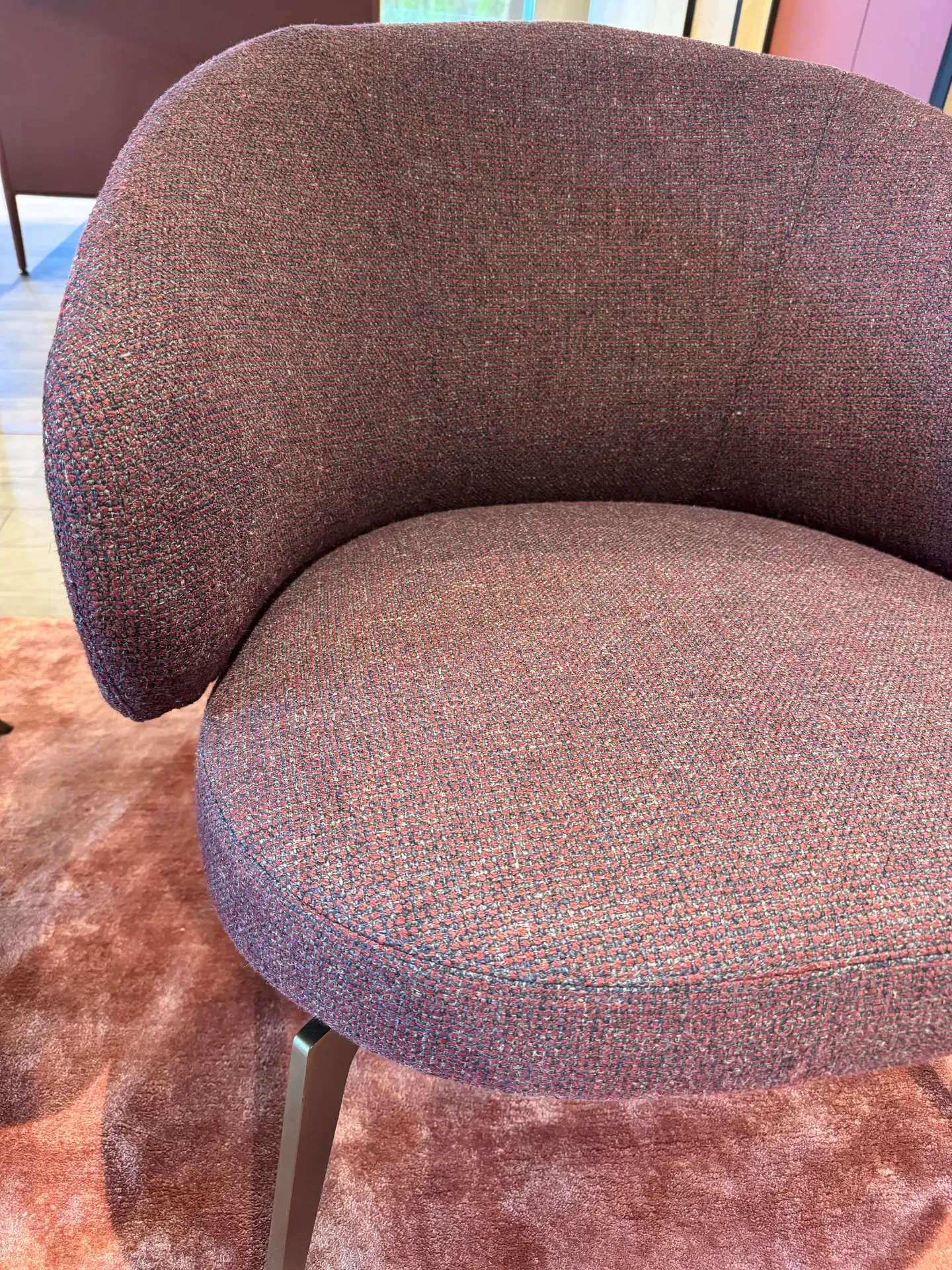 Poltroncina Bice di Lema scontata a 1.490,00 euro (cadauno). Poltrona con rivestimento in tessuto colore amaranto e la lieve struttura in metallo bronzato. Poltroncina di design, un prodotto nuovo e classico che si identifica nelle forme accoglienti e nell'animo vintage. Complemento perfetto per ogni ambiente della casa, dal living alla camera da letto. Poltrona larga 71 cm, profonda 70 cm, alta 71,7 cm. E' possibile avere la coppia di poltrone Bice, esposte all'interno del nostro Show room a Giussano, in provincia di Monza e Brianza. Per maggiori informazioni non esitate a contattarci.
