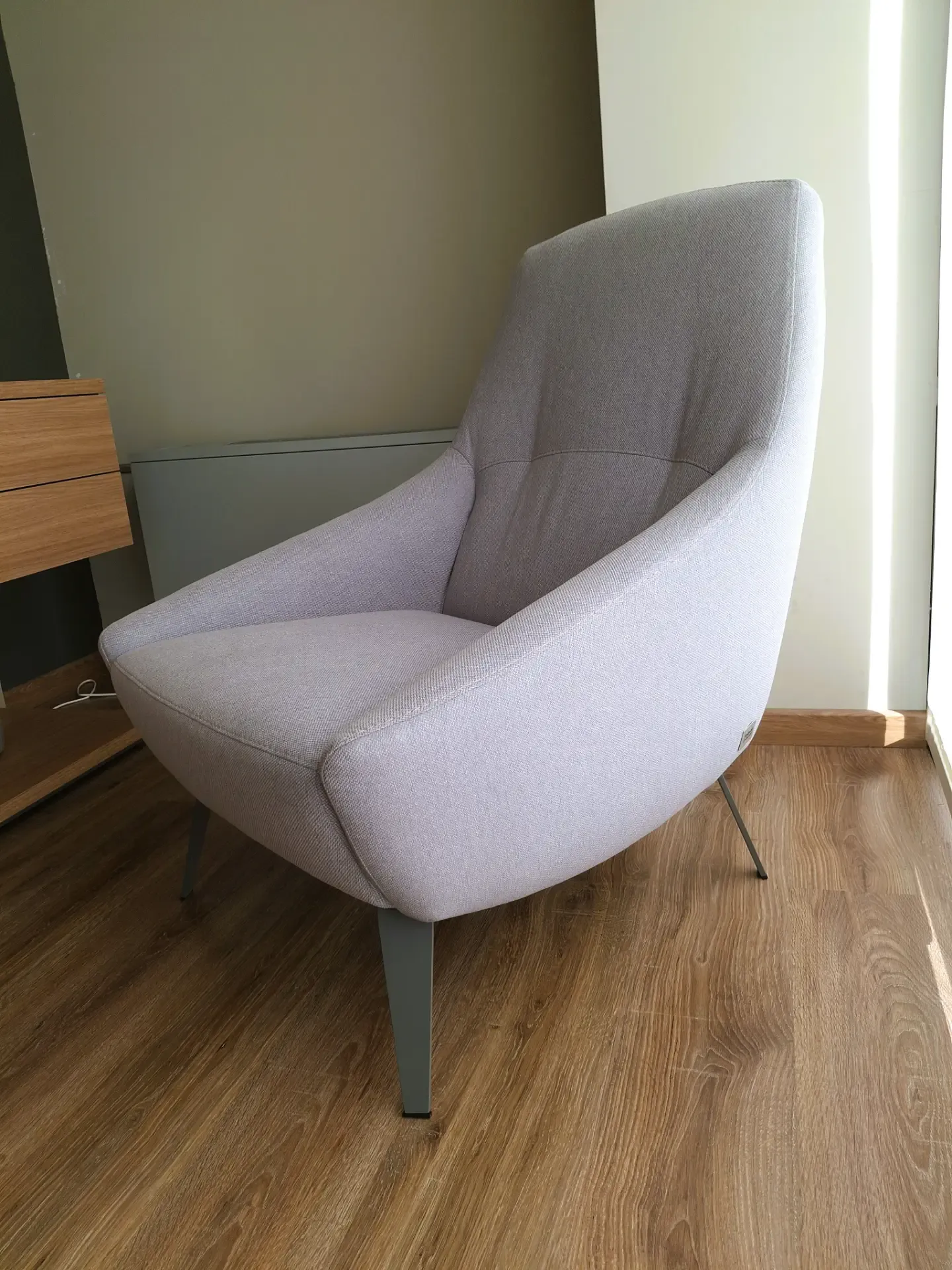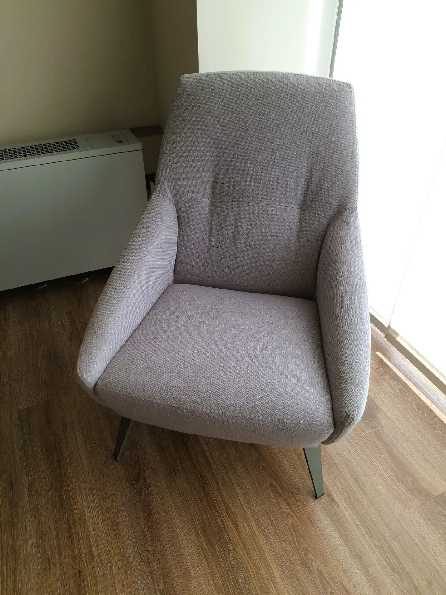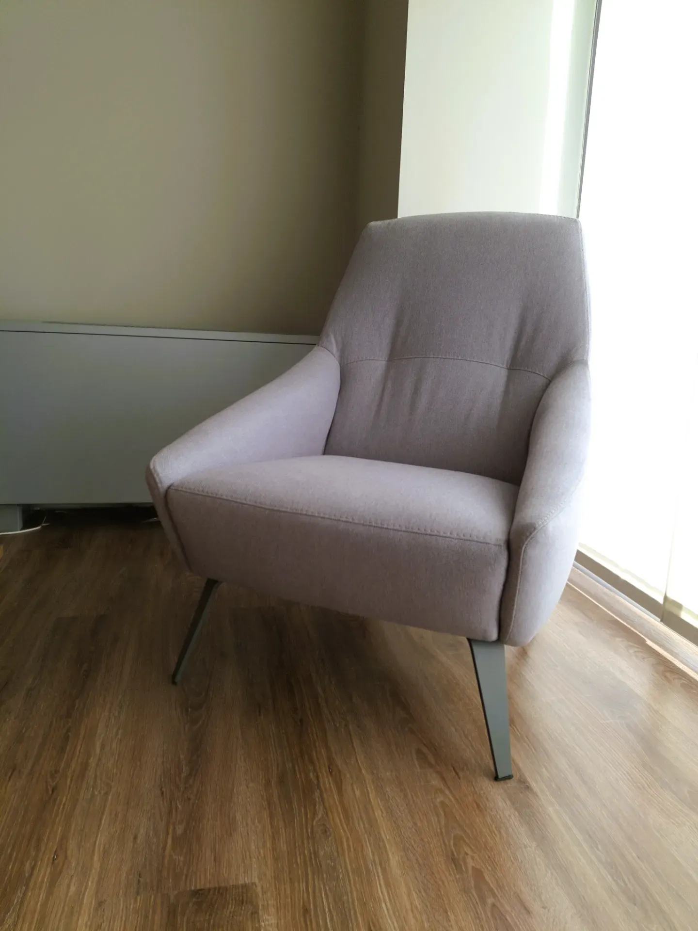 Poltrona Febal Linea Sofas mod. COMFORT MARAIS in tessuto antimacchia cat. 1, in finitura Cinder grigio perla con gambe metalliche antracite, dimensioni L 70 cm P 83 cm H 95 cm.