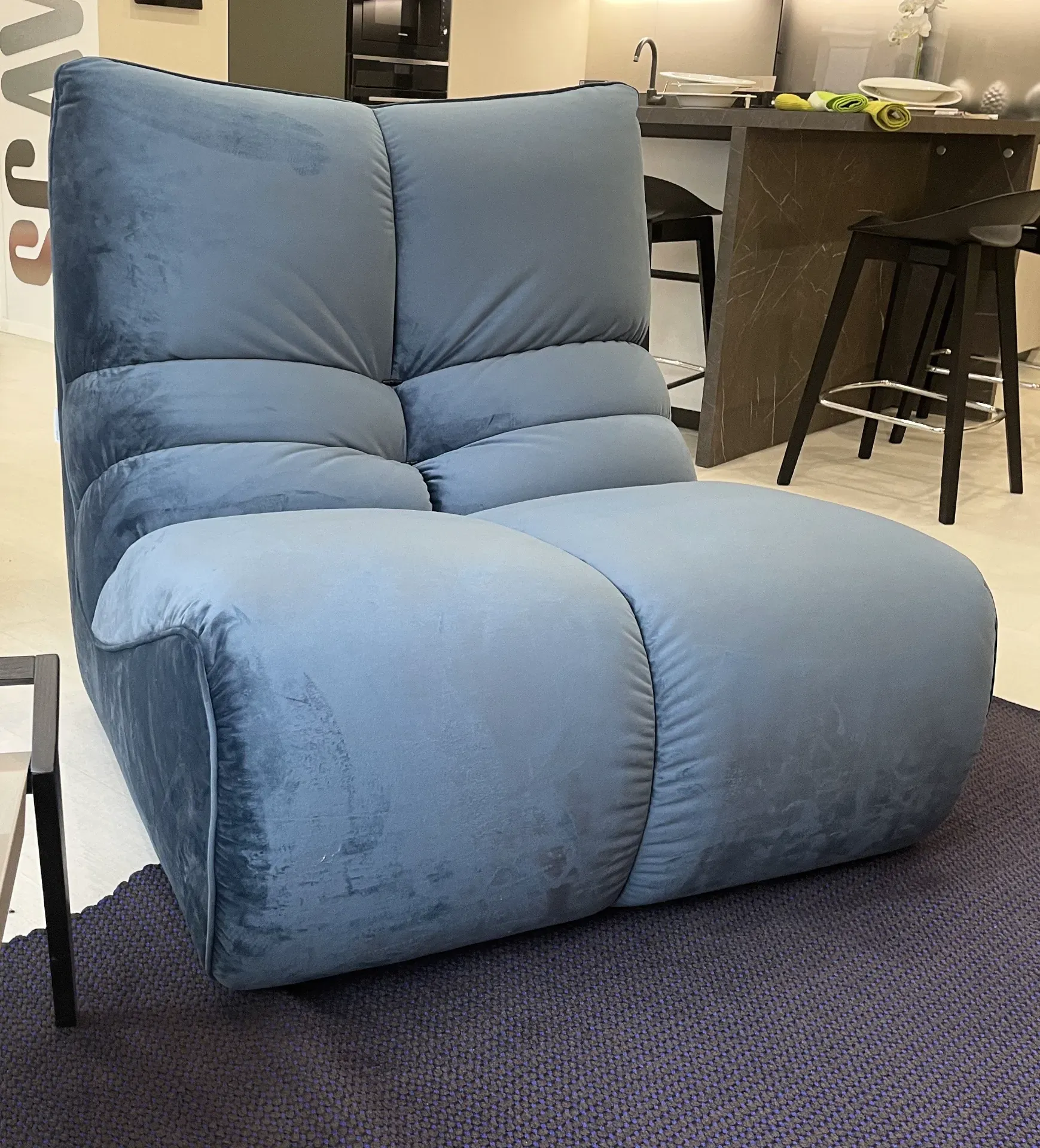 Franco ferri poltrona Formosa. Una poltrona innovativa, moderna, avvolgente e fluida. In tessuto con impunture che aggiungono morbidezza e che ne definiscono le linee curve di seduta e spalliera, enfatizzate dalla cucitura a rilievo lungo il fianco. la poltrona misura 95 cm di larghezza, 102 cm di profondità e 94 cm d'altezza.