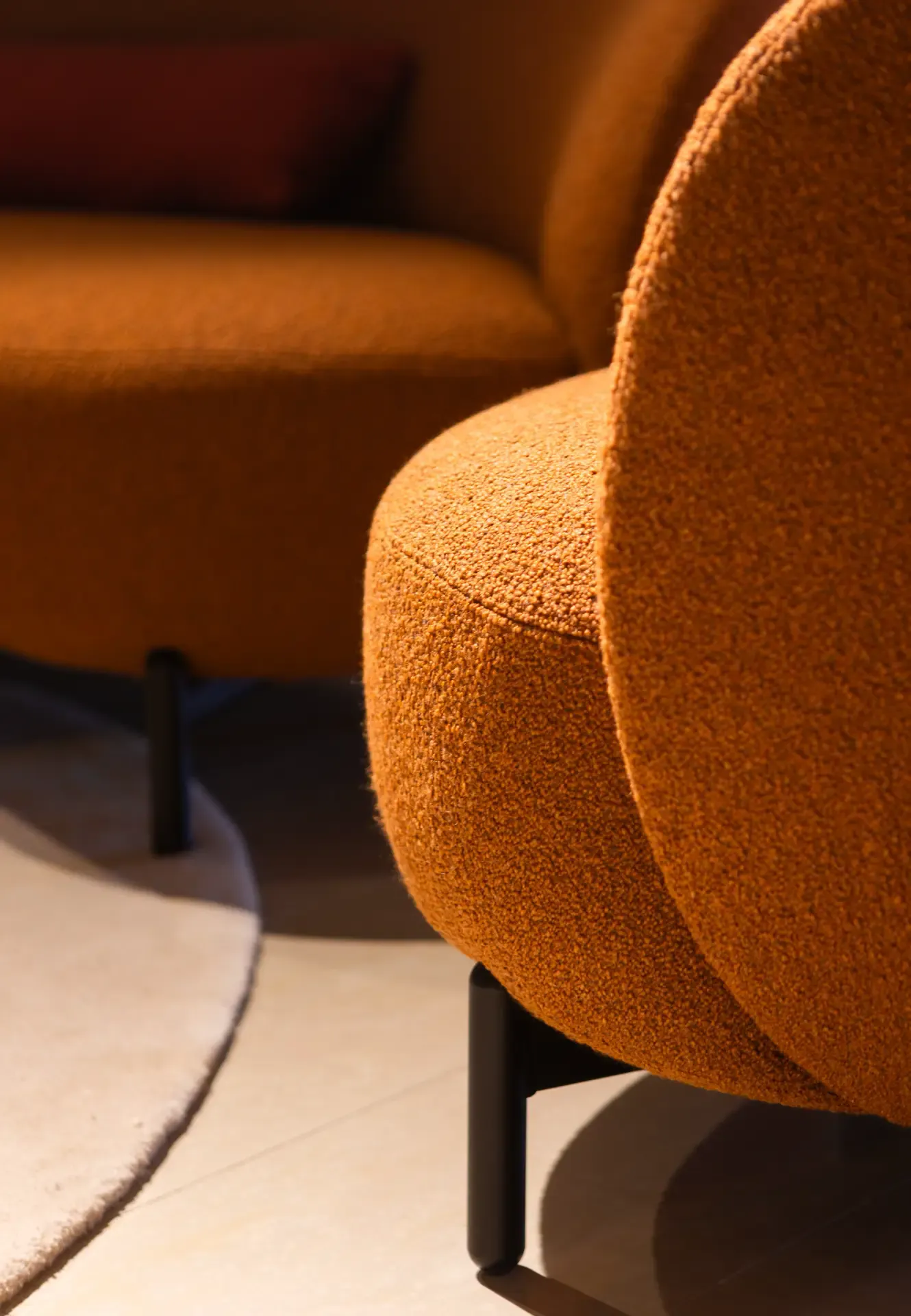 Lunam è un avvolgente collezione living che racconta le atmosfere sognanti di un paesaggio lunare. Un essenziale struttura in metallo verniciato sostiene i volumi generosi degli imbottiti.