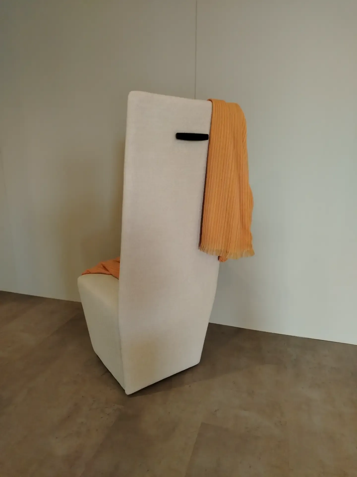 Poltroncina da camera dotata di un solo bracciolo, ideale per riporre gli abiti indossati dotata di maniglia posteriore. Rivestimento in tessuto non sfoderabile
