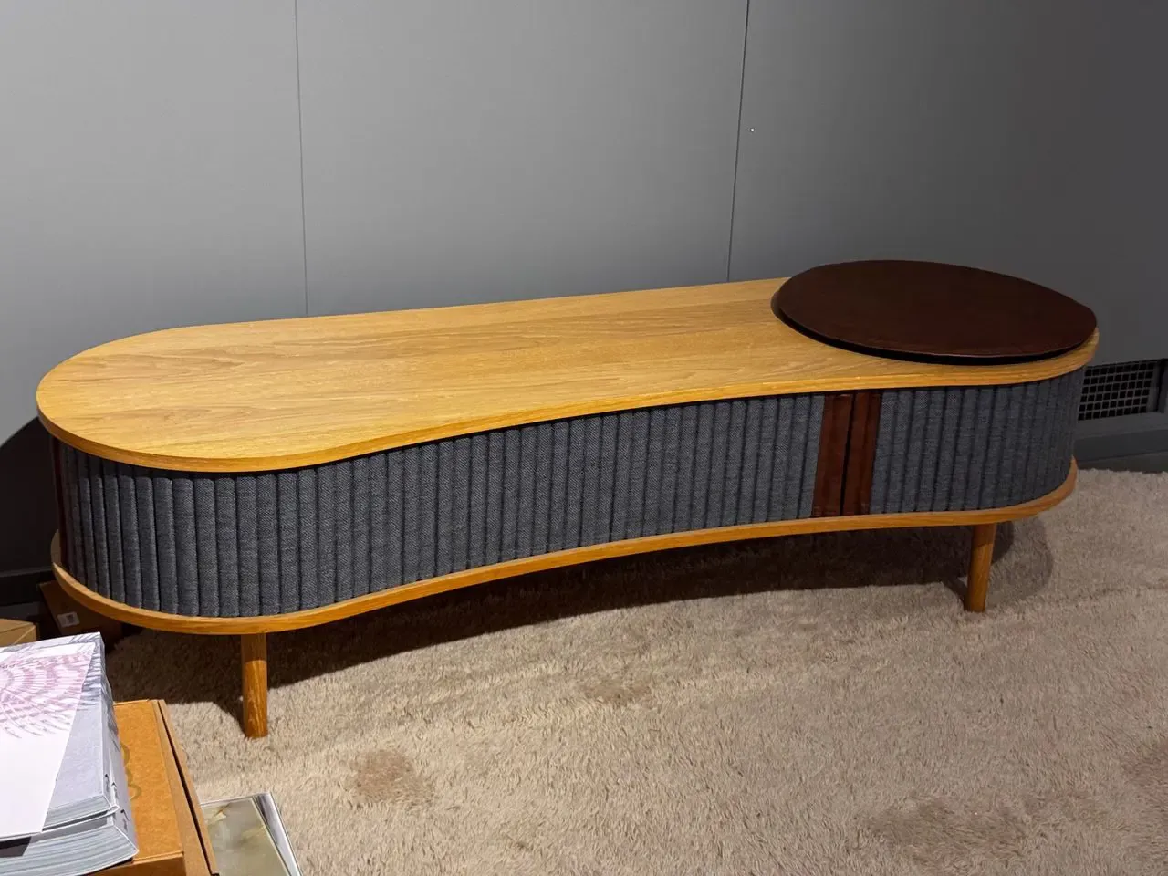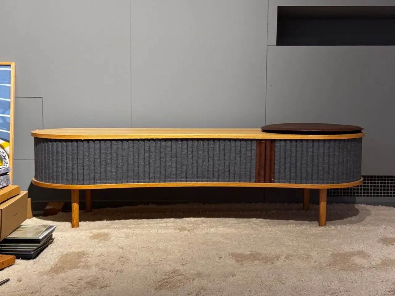 Il mobile TV Audacious di Umage, è un mobile versatile pensato per vari usi. Può servire come seduta o come contenitore discreto per le apparecchiature AV sotto il televisore. La panca è dotata di un'uscita per i cavi sul retro, che consente di nascondere facilmente i cavi disordinati. Posizionandola in un corridoio offre una soluzione pratica per riporre gli indumenti da esterno fornendo allo stesso tempo una comoda seduta per indossare le scarpe.