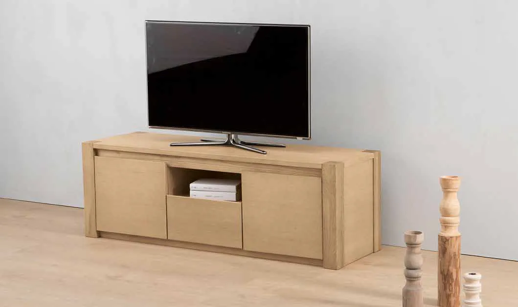 Porta TV in legno dotato di un vano a giorno , 2 ante laterali e 1 cassetto , misure 144x44x48h