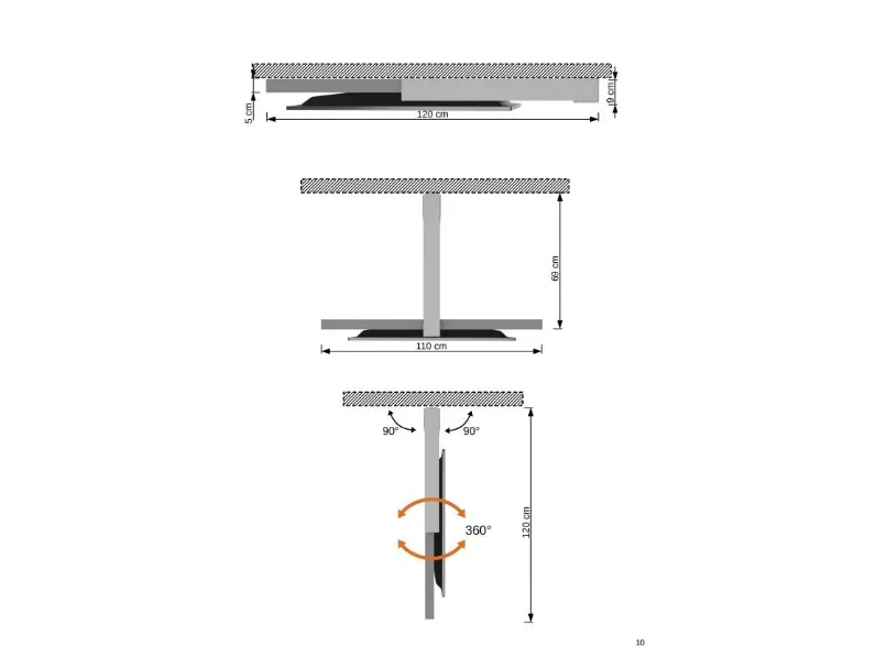 Il costo si riferisce unicamente al pannello orientabile porta Tv e NON comprende le basi sospese al di sotto.