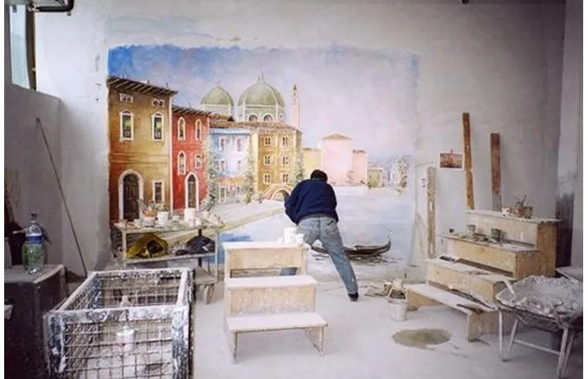 Gli affreschi vengono dipinti su intonaco fresco, utilizzando pigmenti naturali. Successivamente, viene applicata una tecnica di trasferimento su tela che preserva l'originalità dell'opera.
