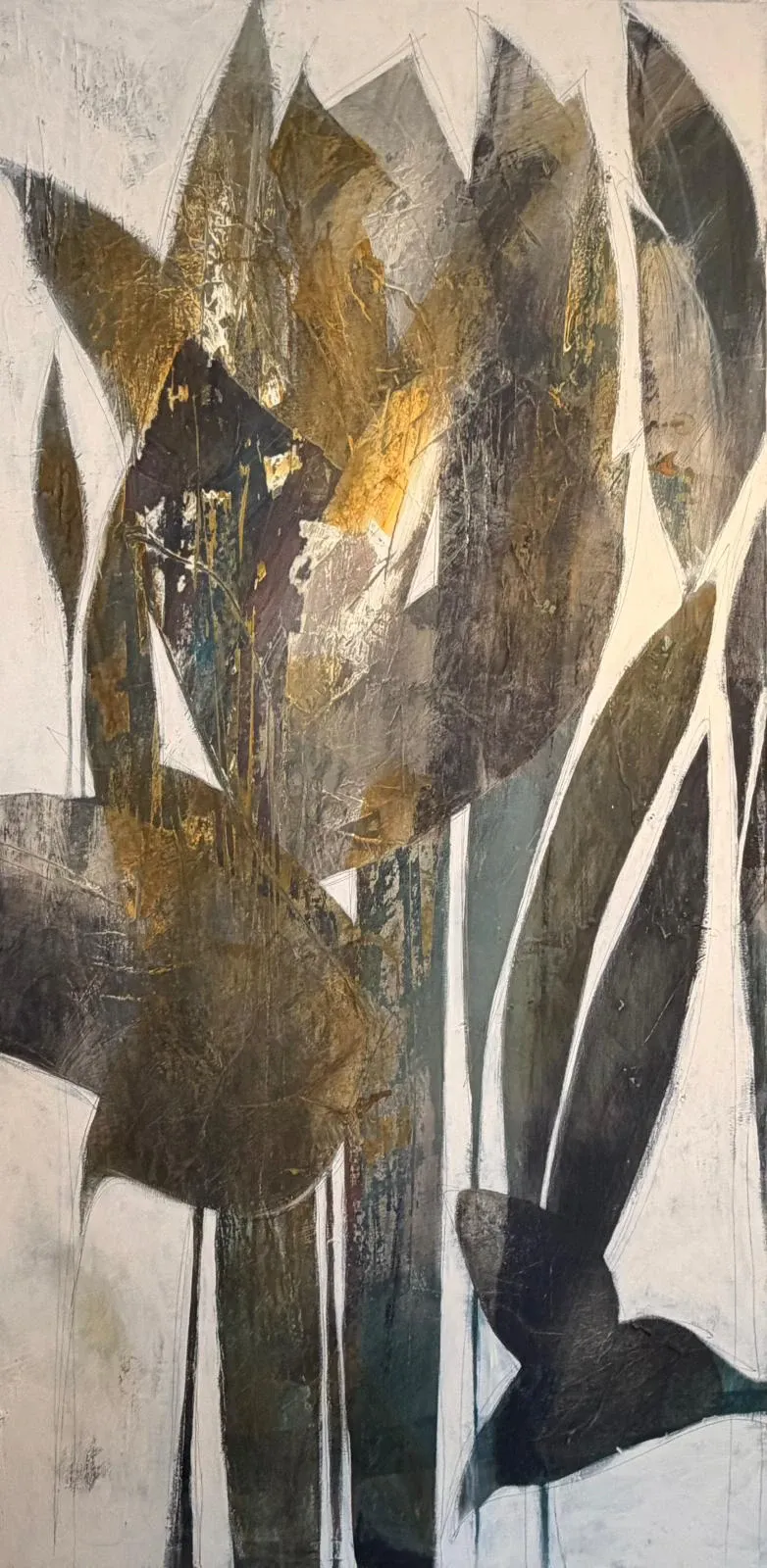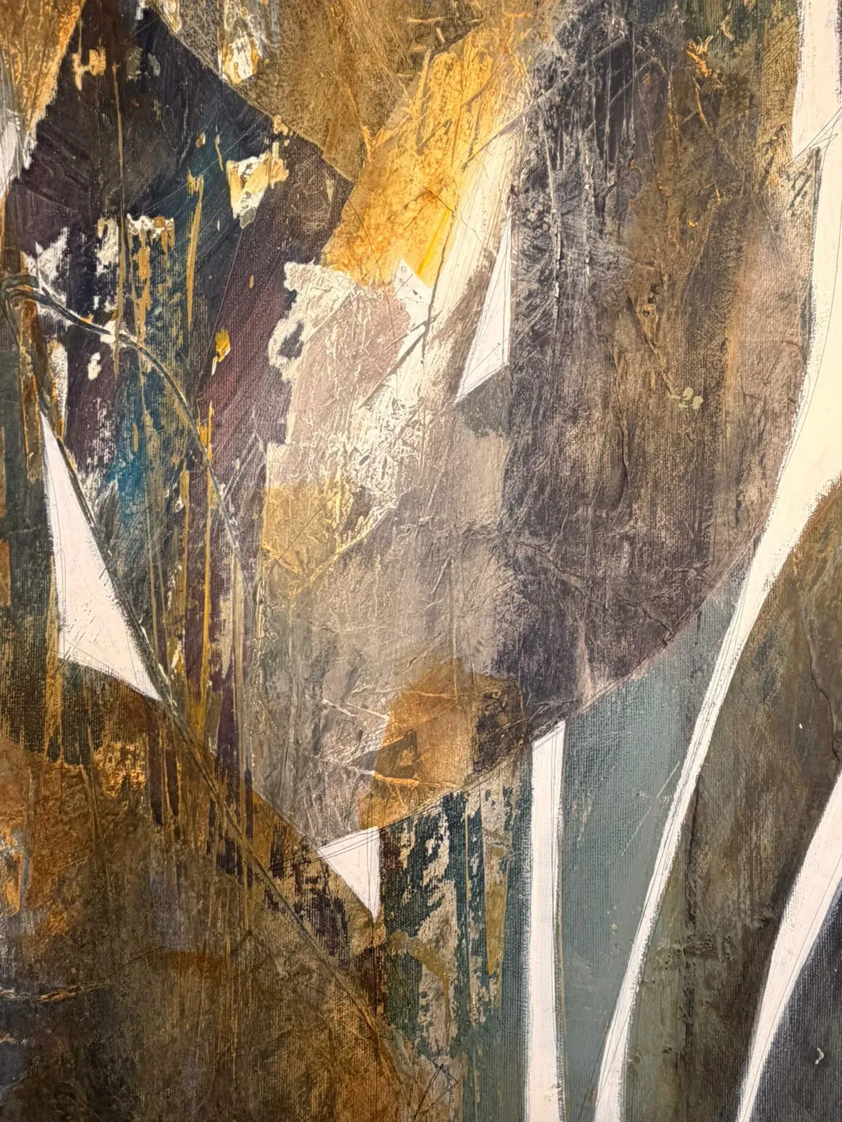 Quadro su tela artigianale 62x122. Stucco, pittura acrilica, penna e carta.